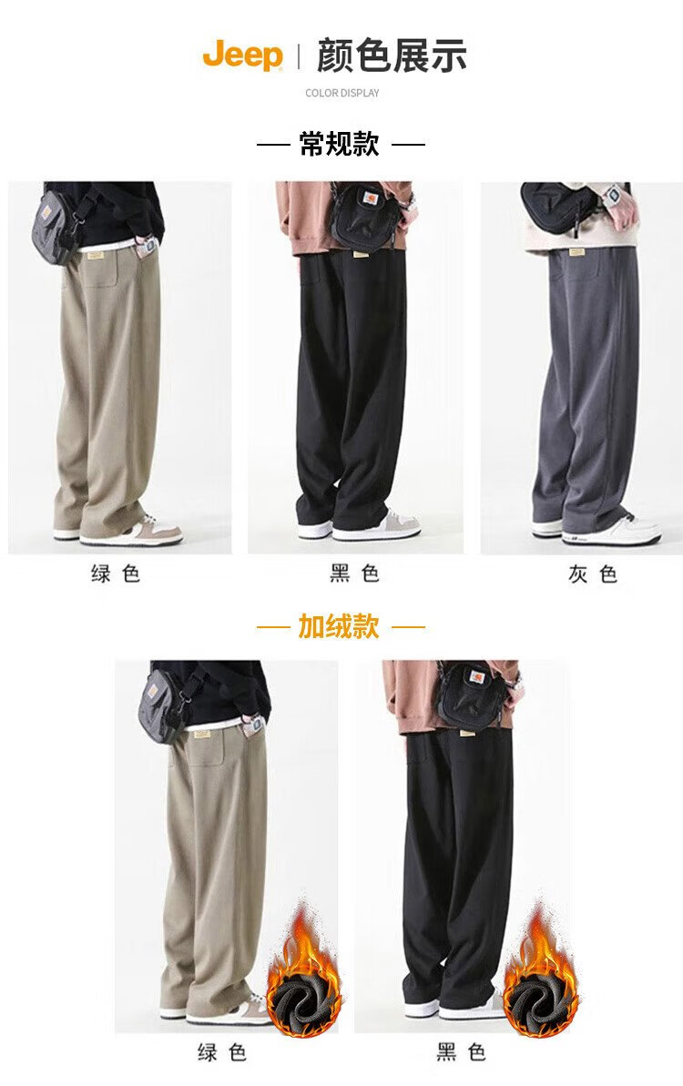 JEEP Casual Pants Men's Autumn and Winter Loose Straight Pants Men's Trendy and Versatile Sports Men's Pants Green XL