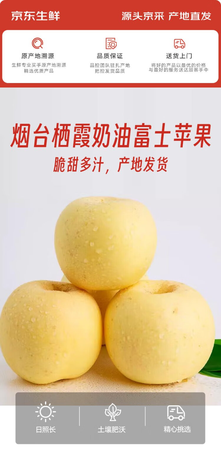 Jingdida Yantai Qixia Apple Cream Fuji Apple 25 Years New Fruit Grade 80 5Jin Jin is equal to 0.5 kg Yantai Apple Fruit Directly from the Source