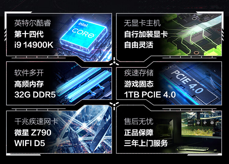 Jingtian Dragon Hunter A8 14th Generation i9-14900K/Z790/32G D5/1T SSD/Host/Computer Desktop Computer Complete Home Game Console National Subsidy 20%