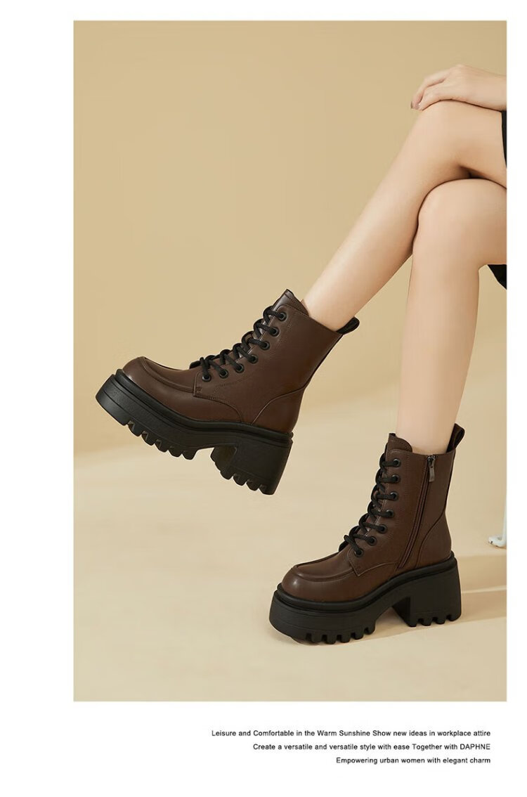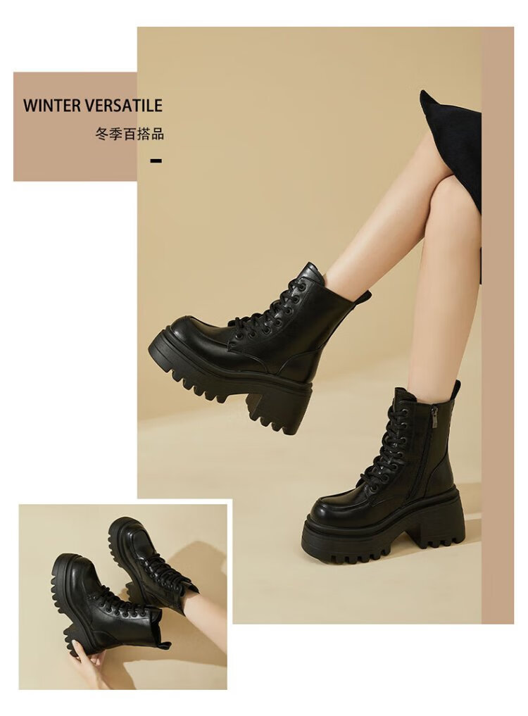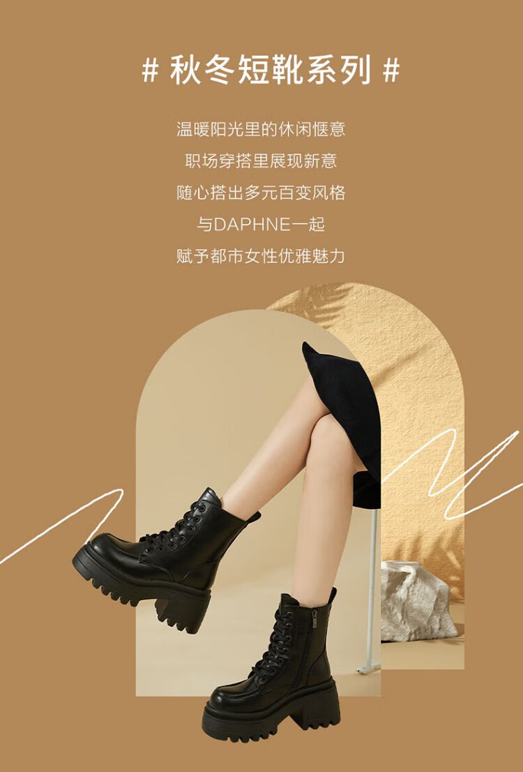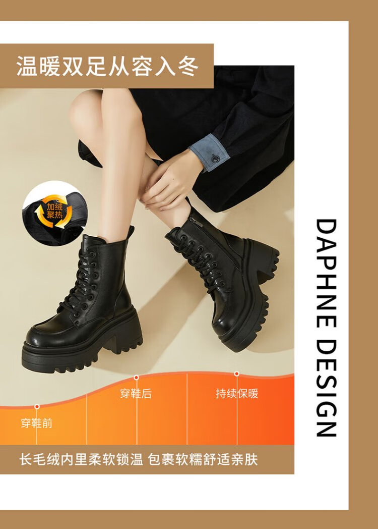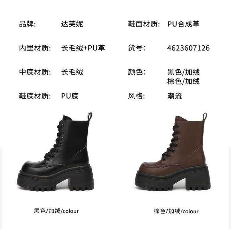 Daphne Martin boots women's inner heightening short boots versatile thick heel high heel black plus velvet women's boots 4623607126 black 37