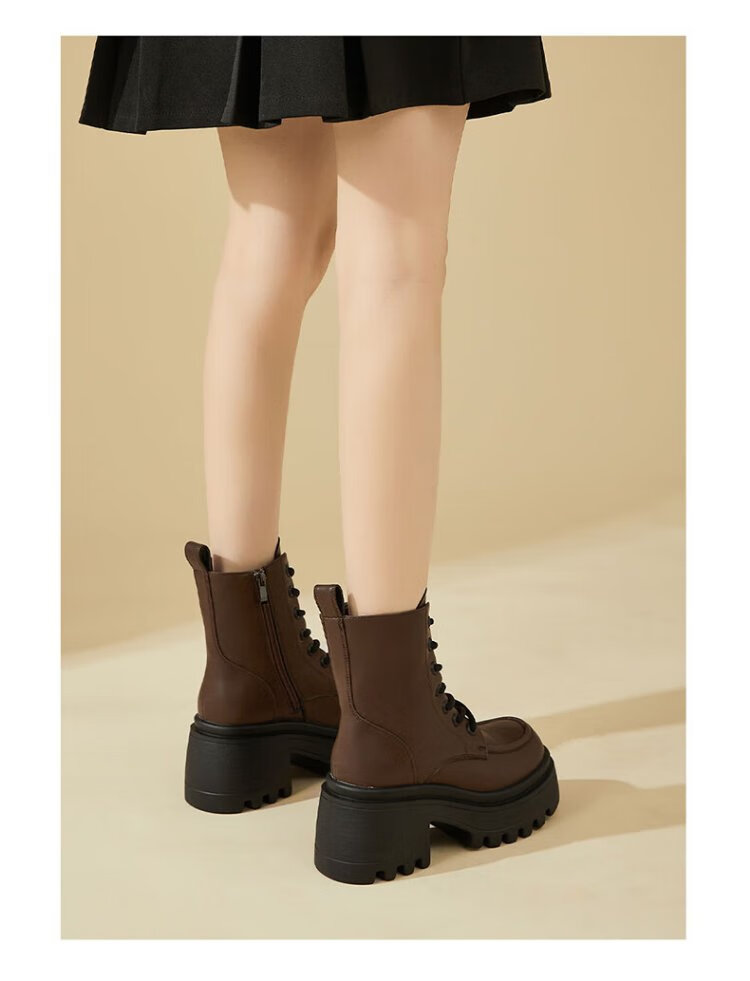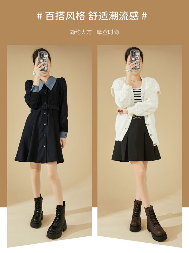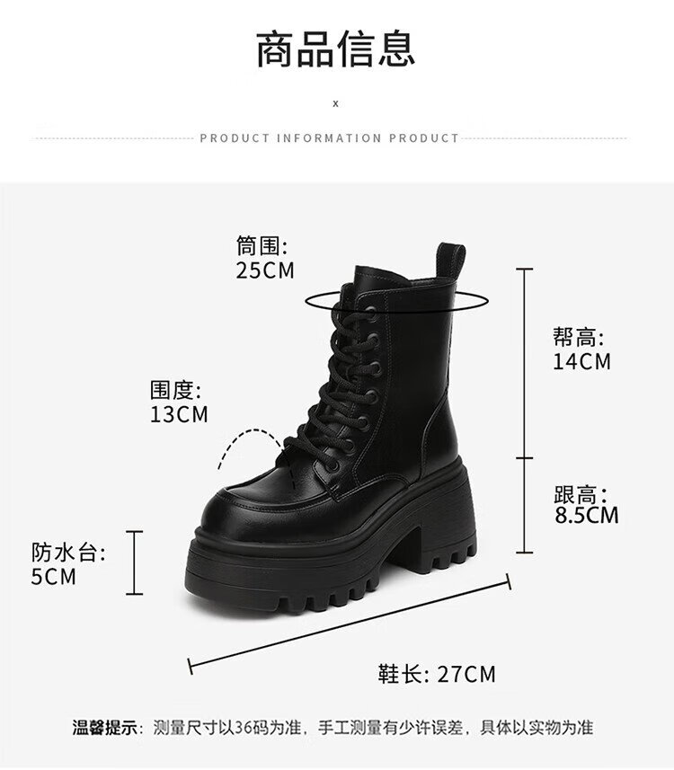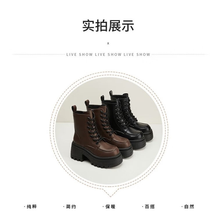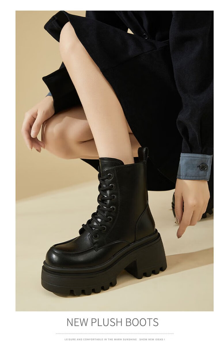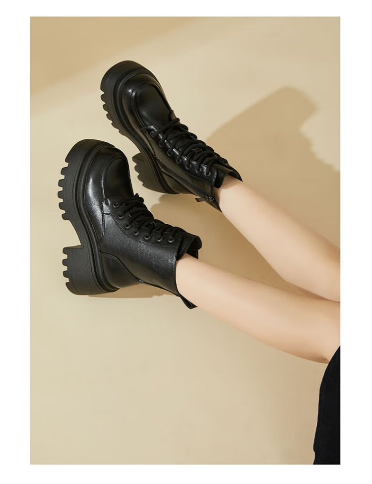 Daphne Martin boots women's inner heightening short boots versatile thick heel high heel black plus velvet women's boots 4623607126 black 37