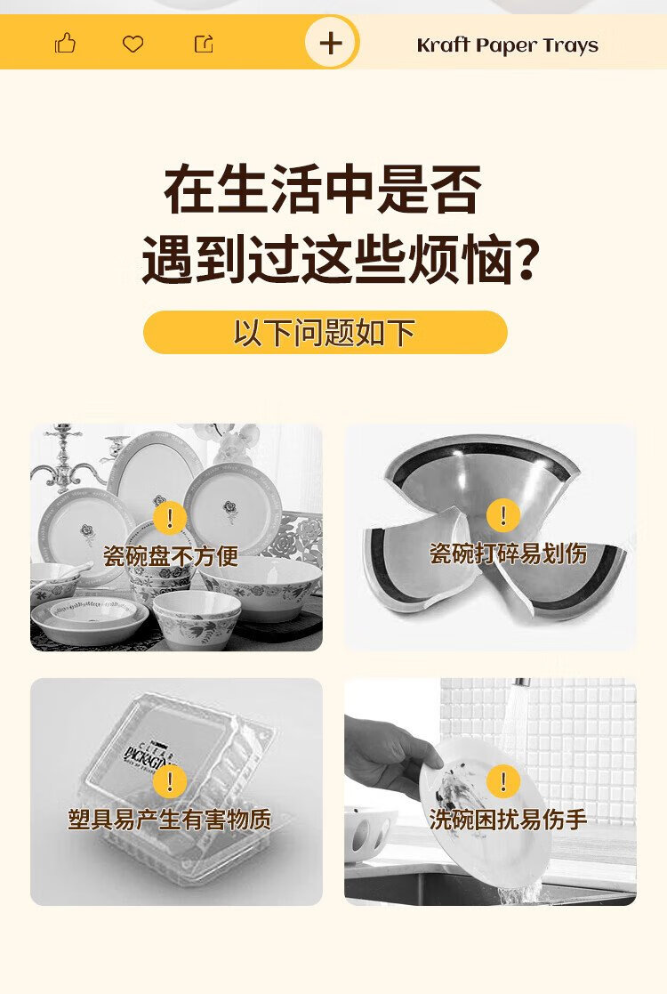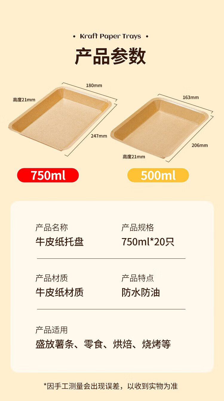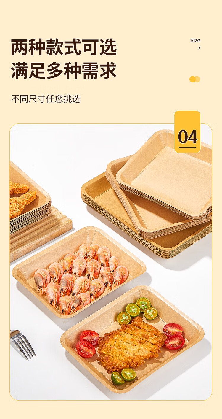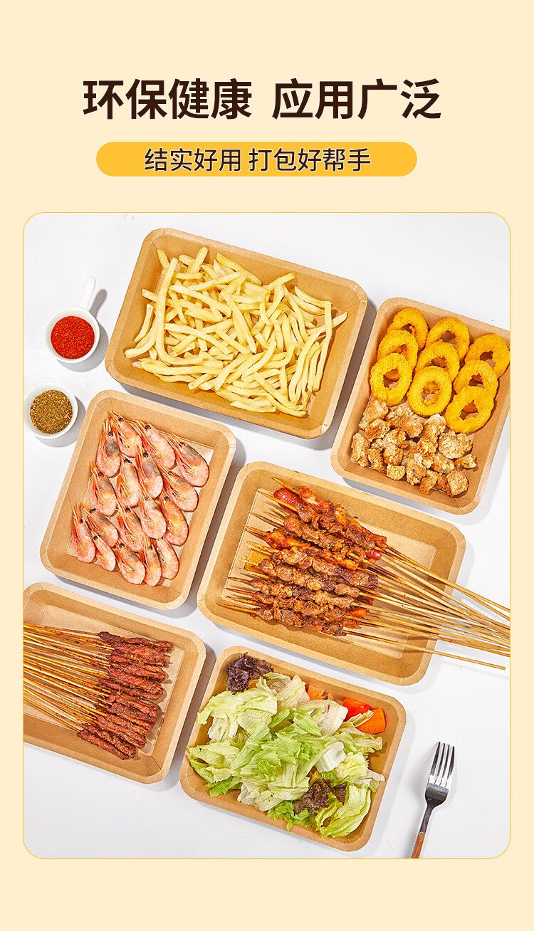 Blue natural disposable plate barbecue dinner plate 750ml*20 large kraft paper tray food camping outdoor picnic set