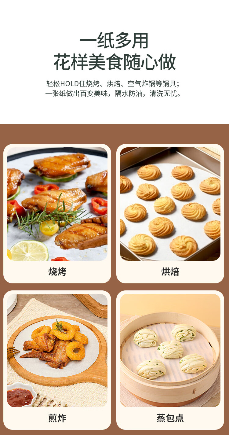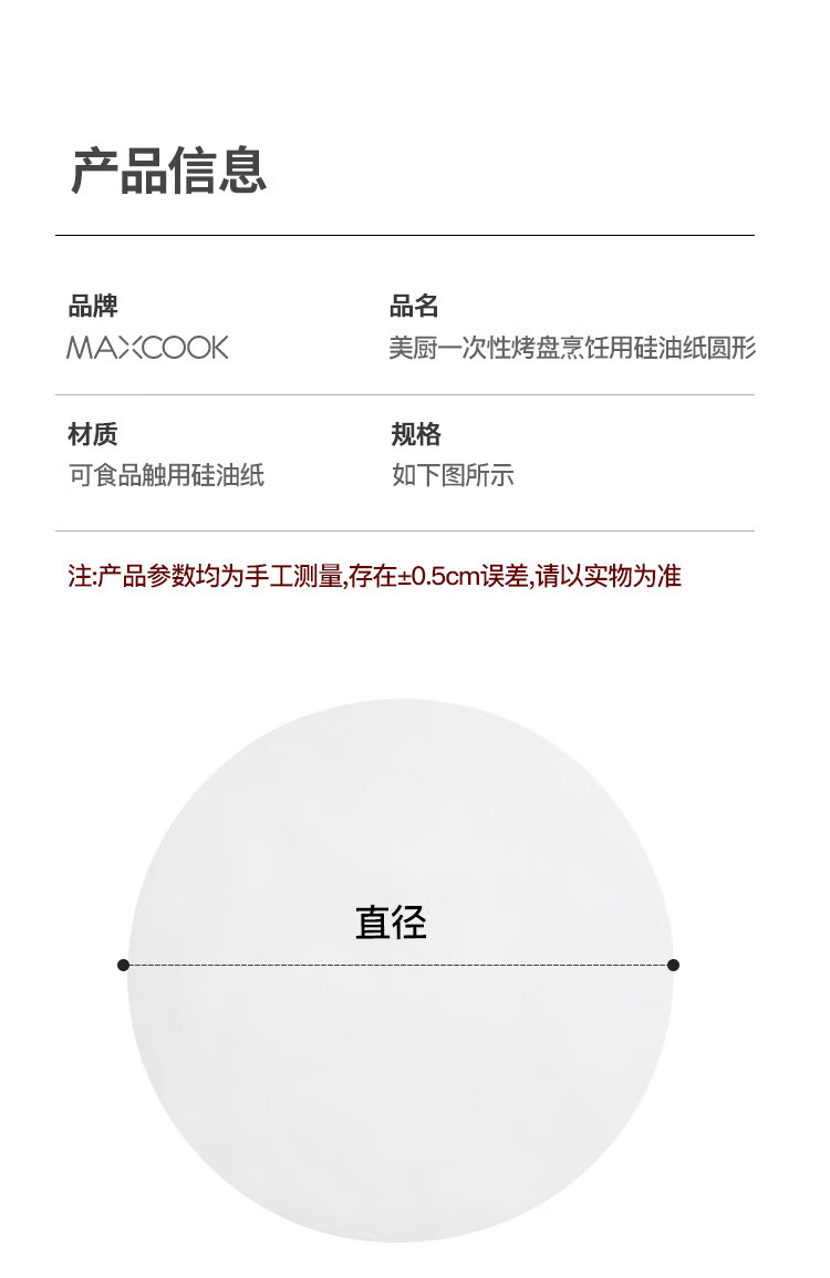 MAXCOOK silicone paper air fryer paper barbecue baking paper steamer paper baking paper 30cm 50 sheets MCPJ4504