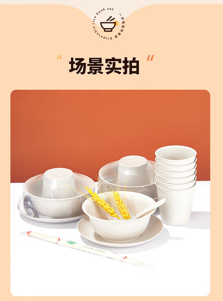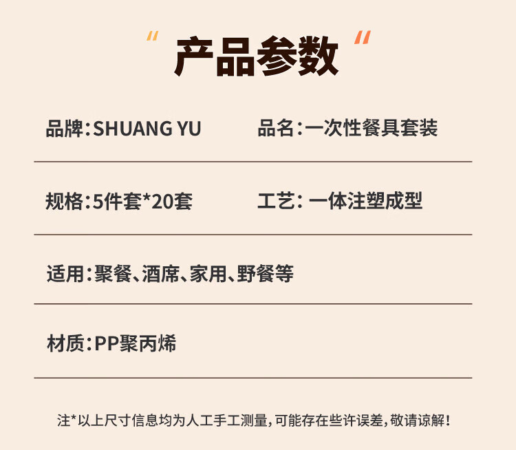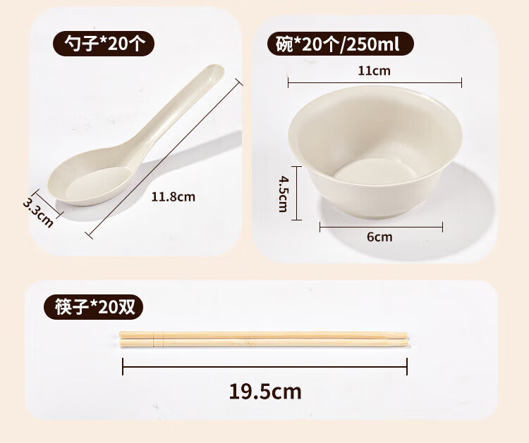 SHUANG YU disposable tableware five-piece set * 20 servings bowls, chopsticks, cups, plates and spoons outdoor picnic individually packaged