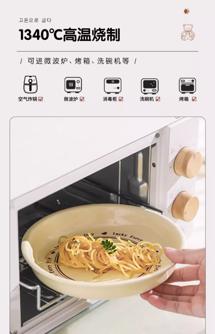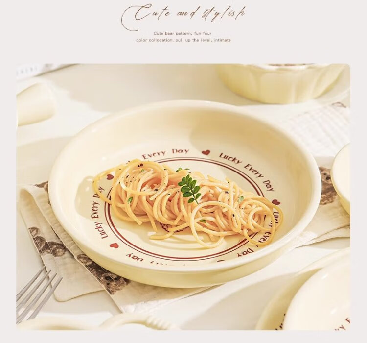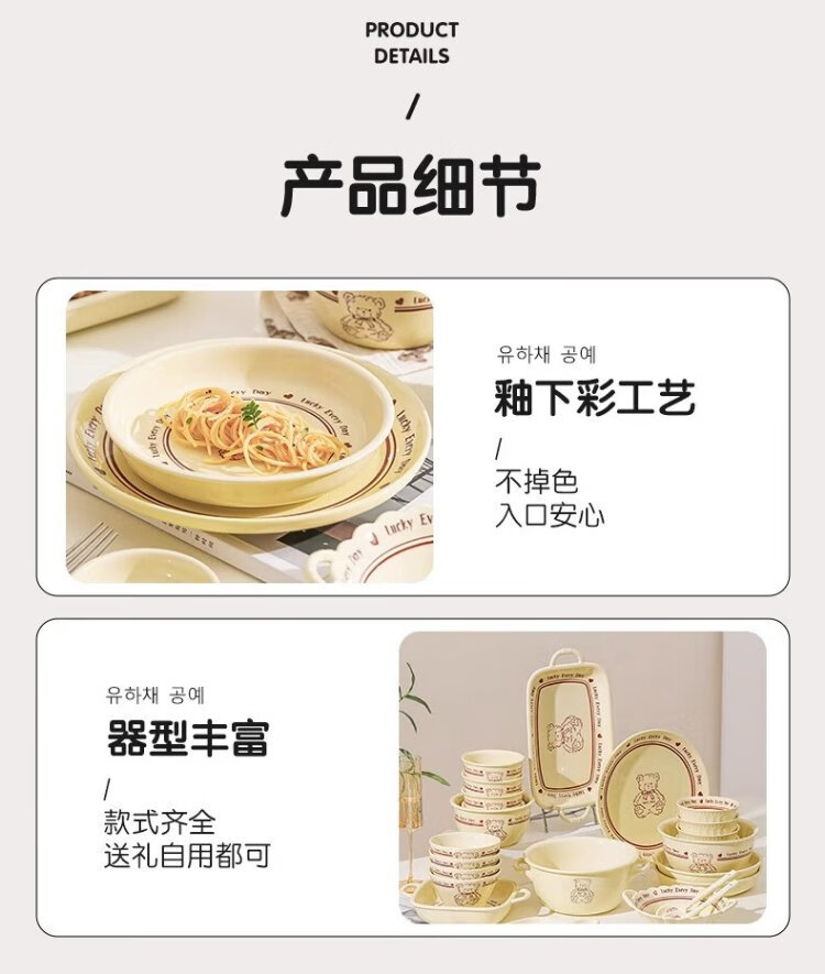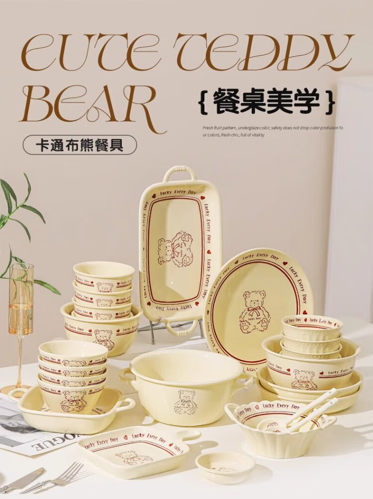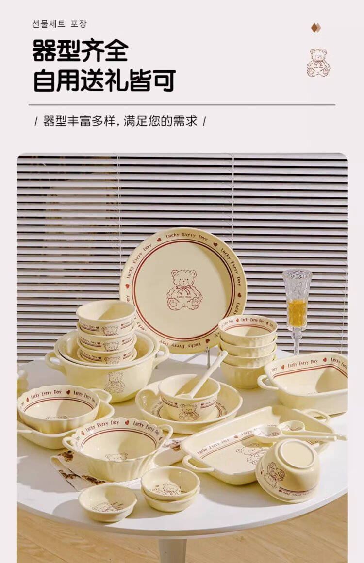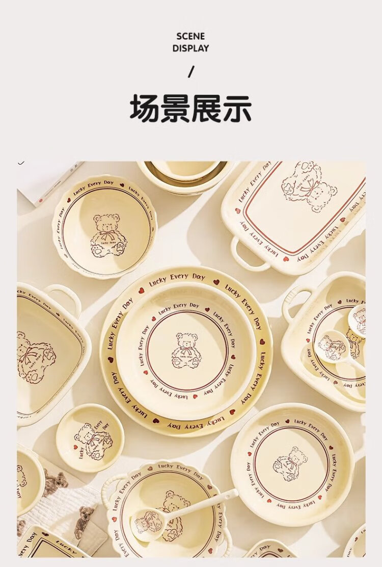 Persson cartoon cute 3-piece set of lucky bear ceramic tableware for home use for one person, underglaze color bowls and plates, complete set