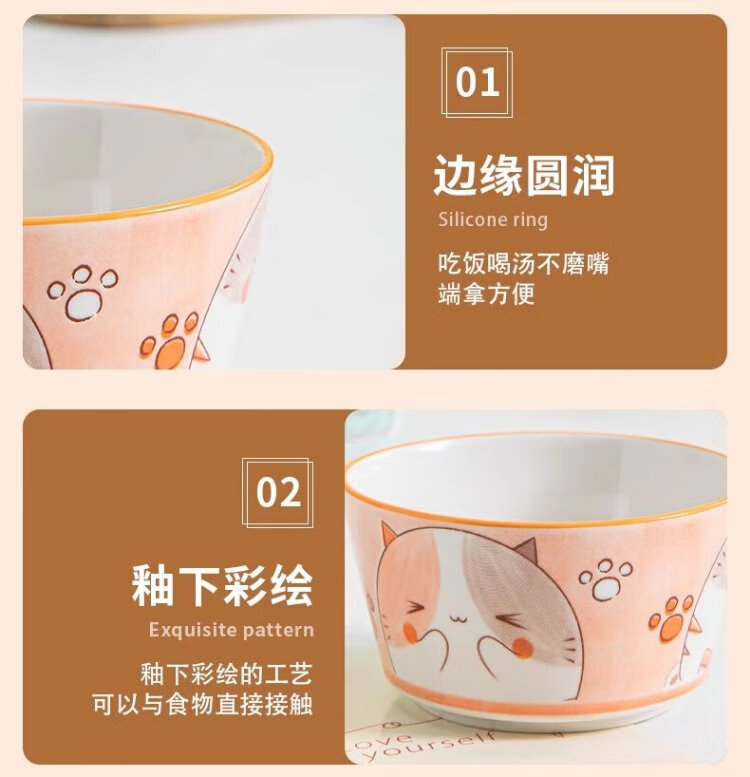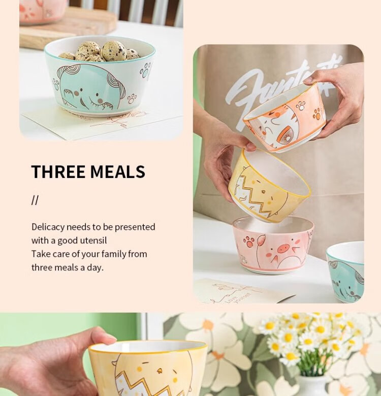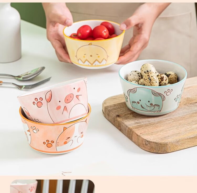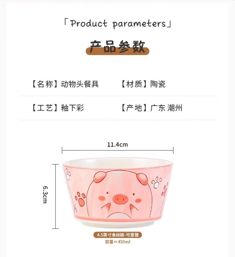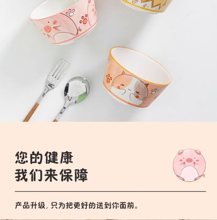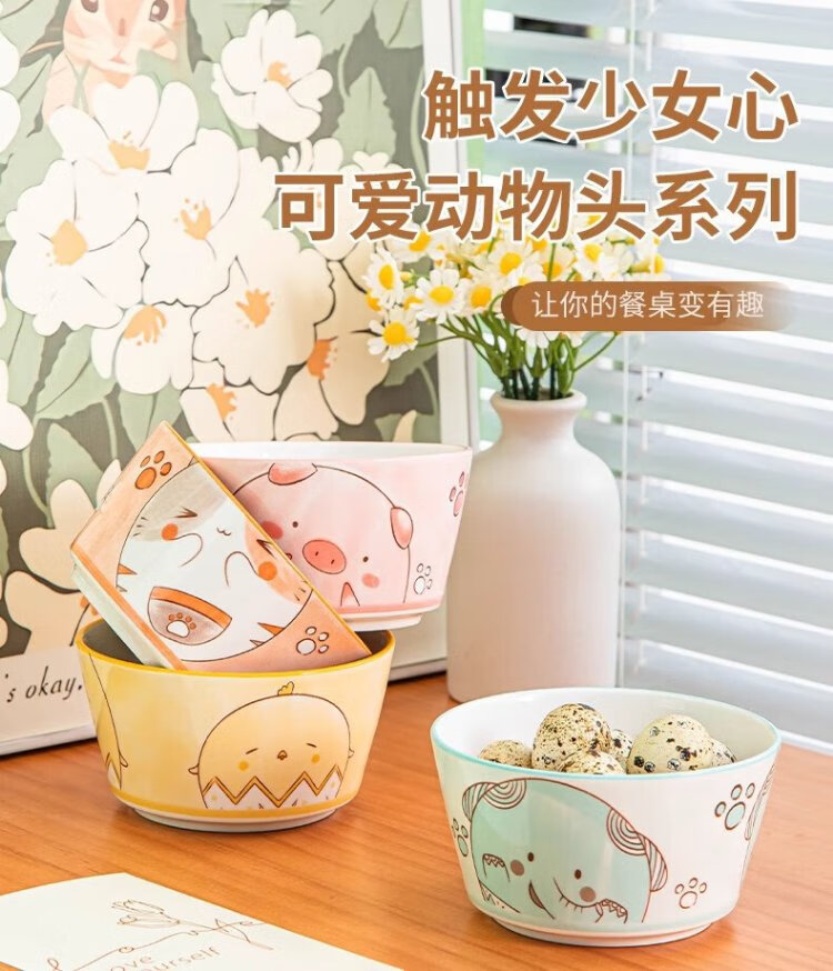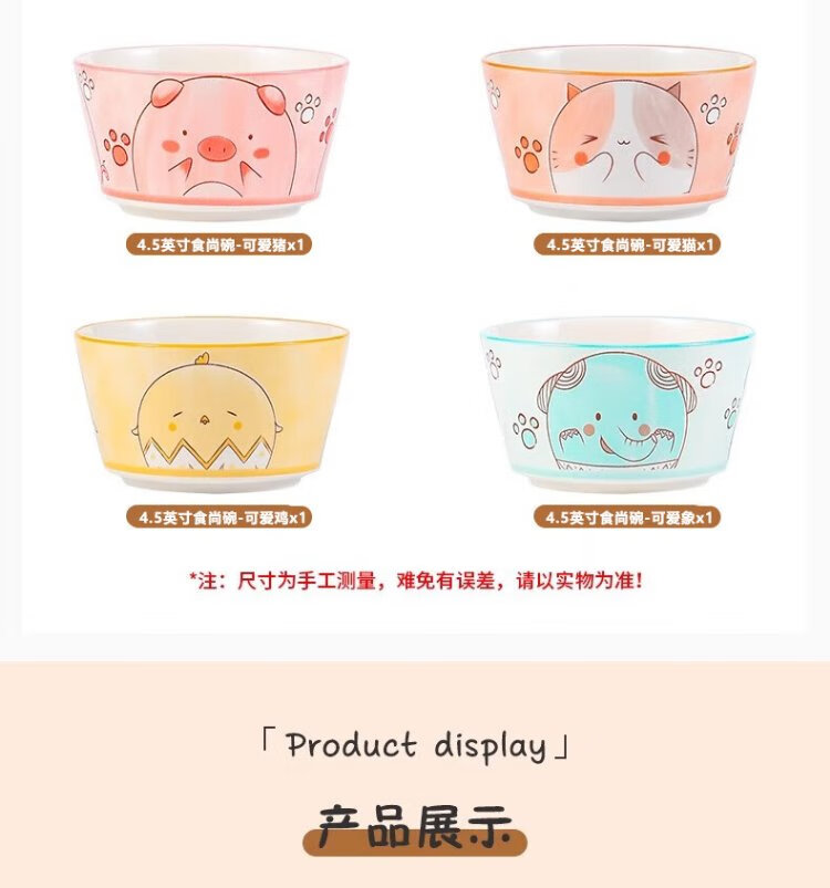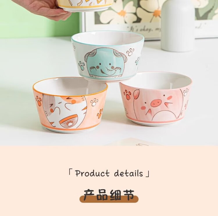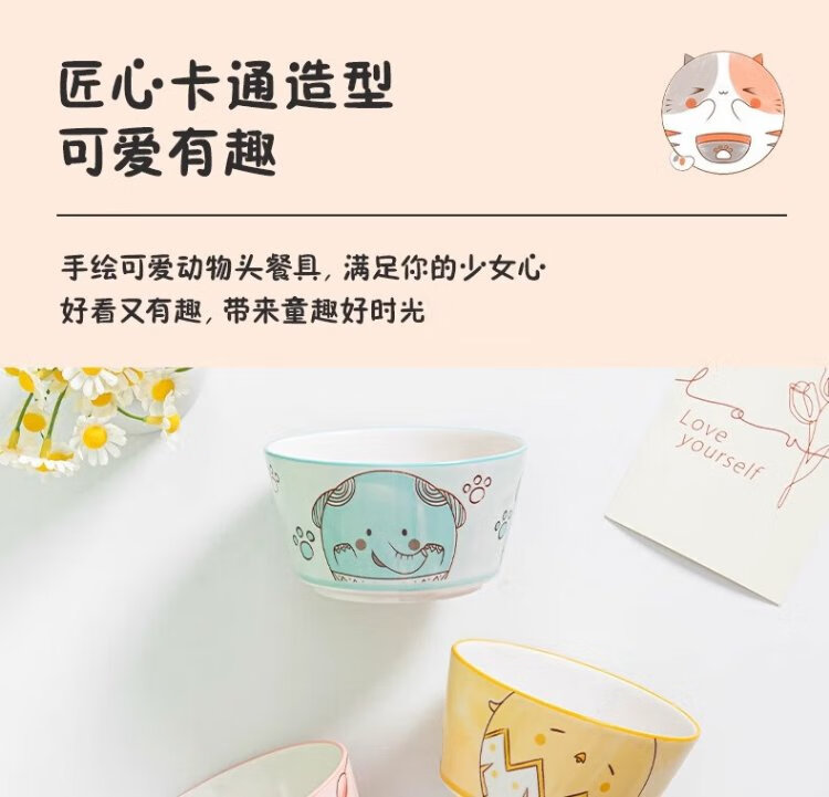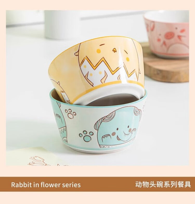 Persson ceramic tableware cute dishes internet celebrity high-looking household rice bowl 4.5-inch food bowl animal head 4 pieces mixed