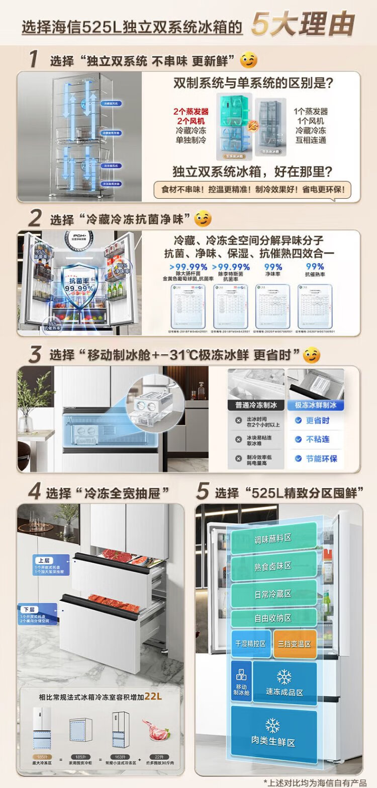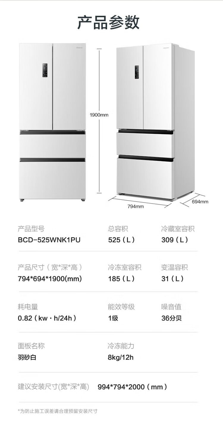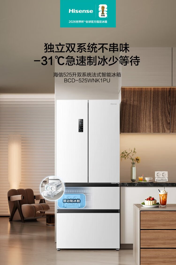 Hisense 525 liter dual system refrigerator four-door French refrigerator household first-class energy efficiency frost-free home appliances national subsidy 20% trade-in BCD-525WNK1PU double cycle white