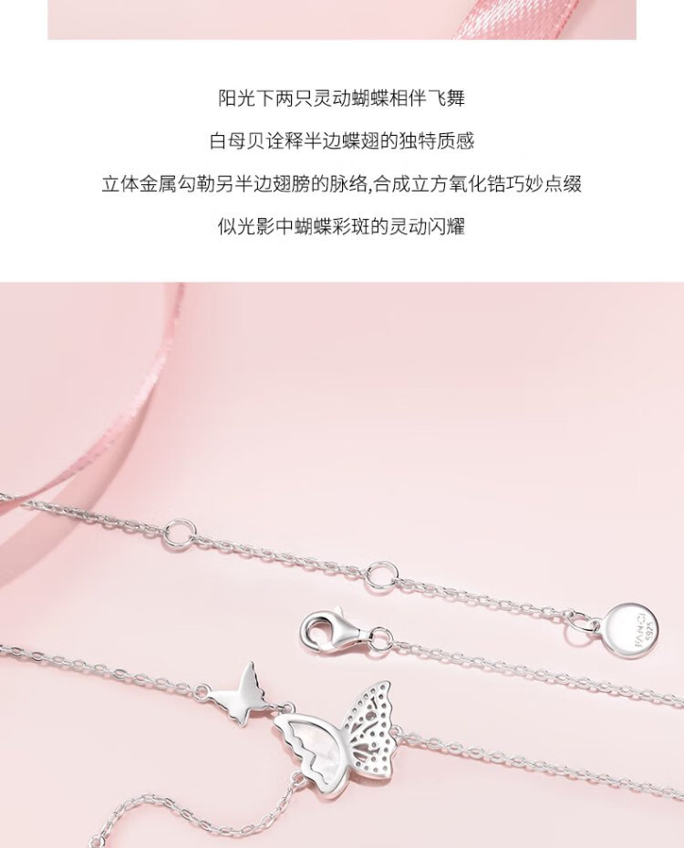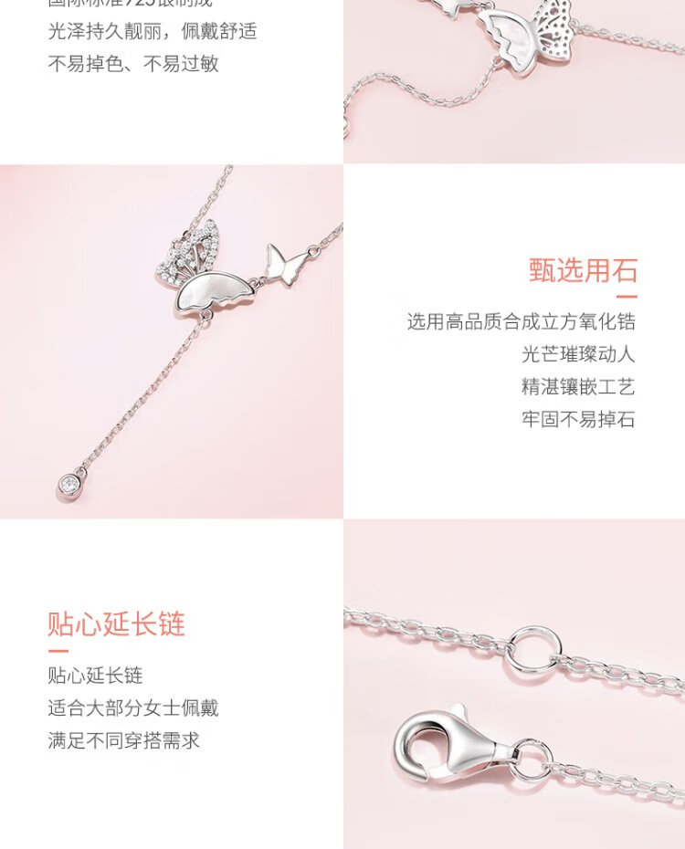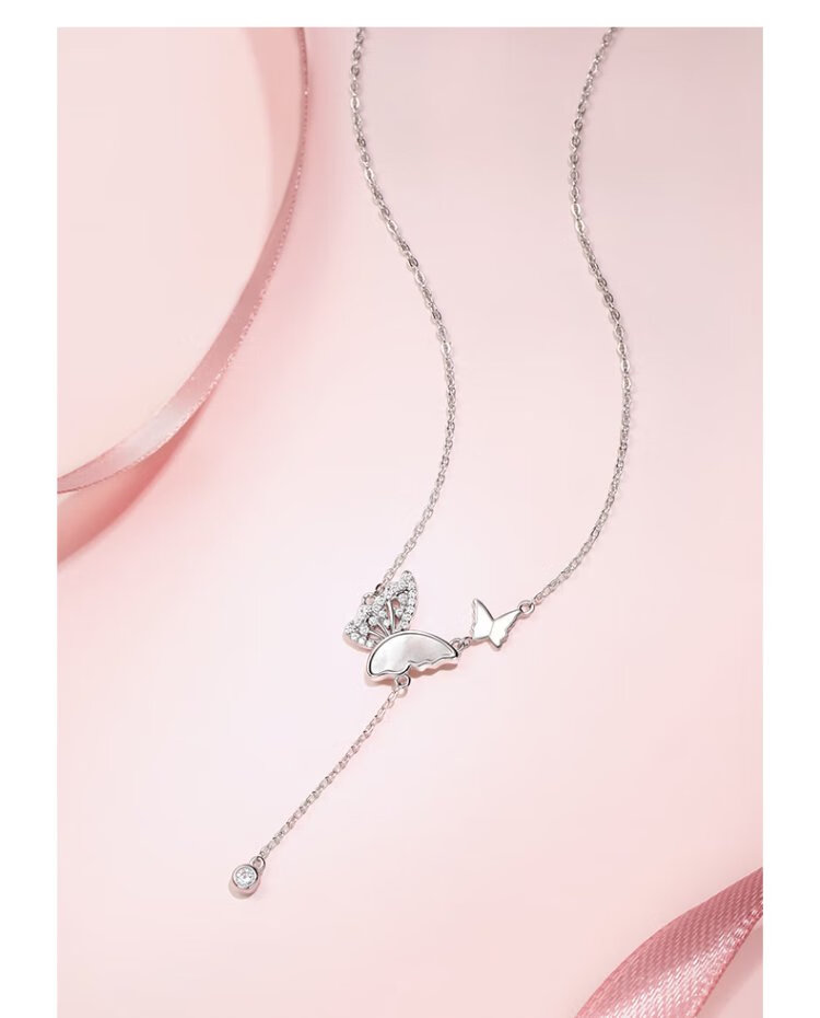 Fanci Fan Qi Light and Shadow Butterfly Necklace Women's 925 Silver Clavicle Chain Light Luxury High-end Gift Birthday for Girlfriend