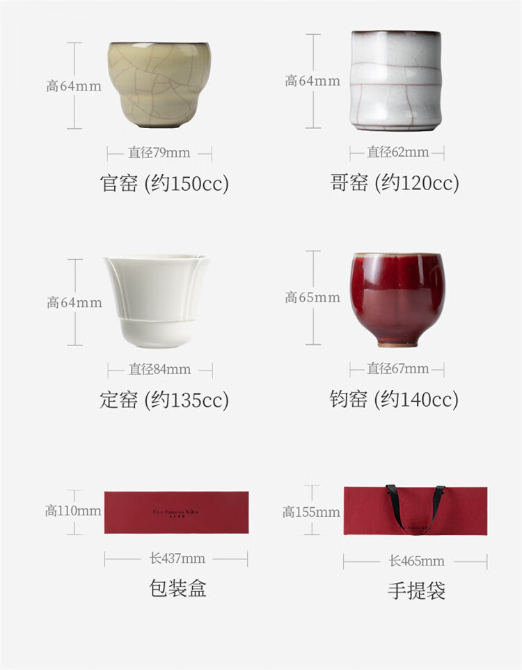 Wanqiantang tea cup personal high-end master cup single cup Ru kiln tea cup gift box set five famous kilns