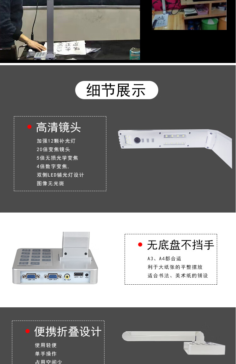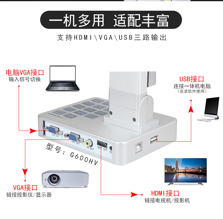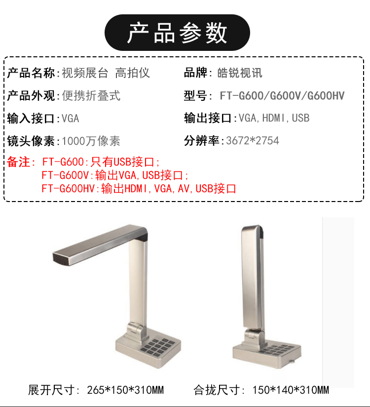 Haorui Video G600 series teaching high-definition camera 10 million pixel high-definition physical exhibition stand calligraphy and painting teaching projector online class live video display device HDMI direct connection to TV