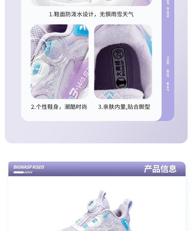 Bumblebee girls' sneakers plus velvet warm cotton shoes running shoes B1023518823NM purple (plus velvet) 33
