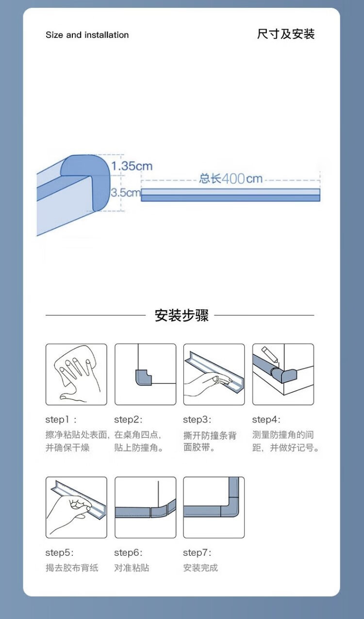 Niubiliti children's anti-collision strips baby table and bedside anti-collision soft bag corner strips anti-collision stickers corner wrapping protection