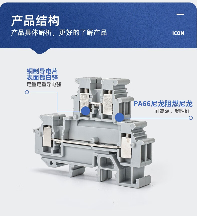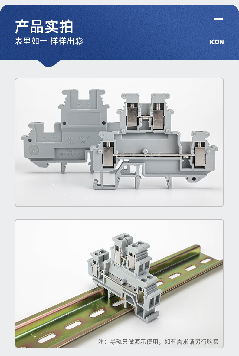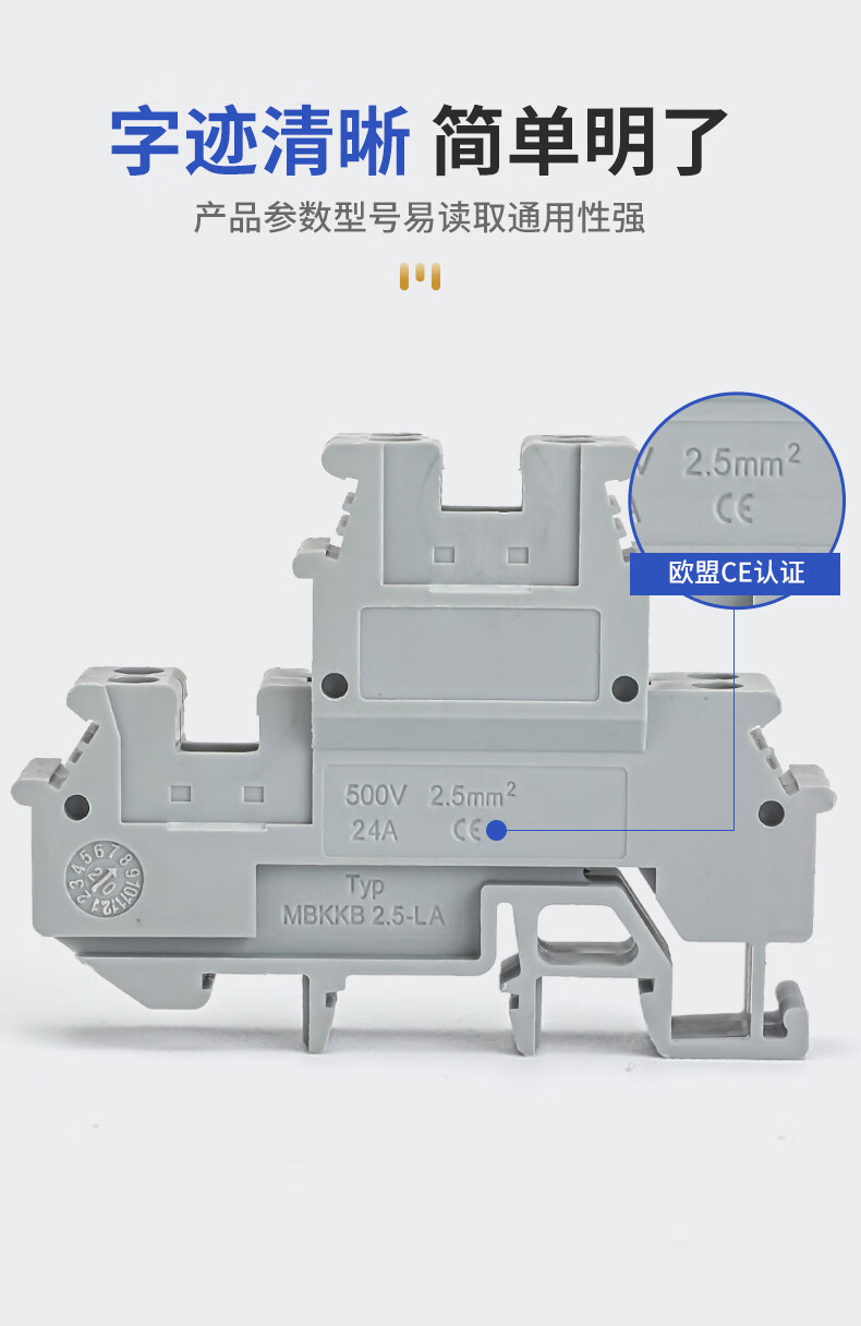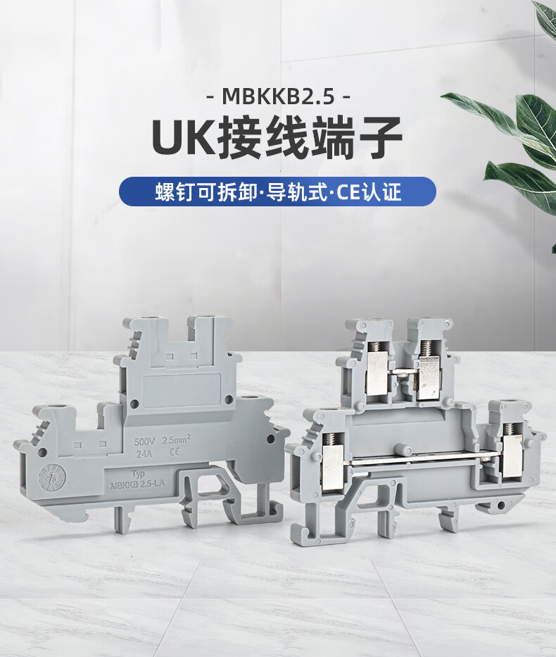 HUNJUN UK2.5 terminal copper double-layer terminal block MBKKB2.5 can be connected to 2.5 square lines 24A/500V D-MBKKB2.5 isolation plate 1 piece