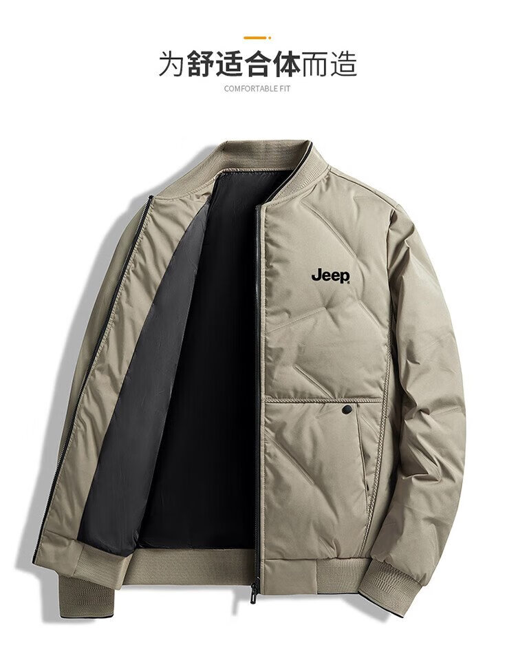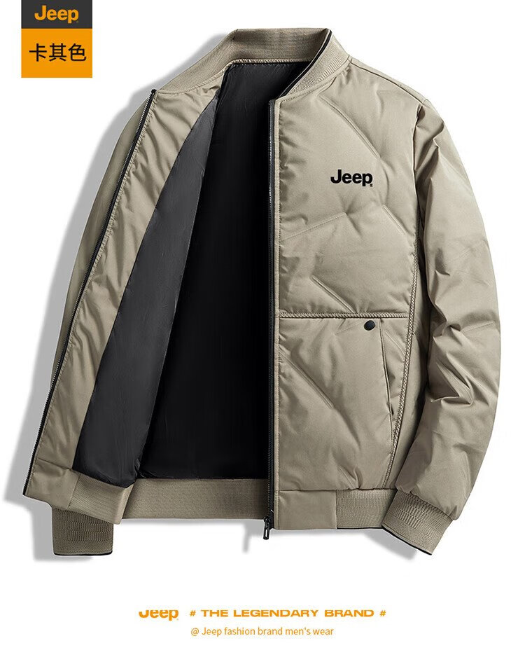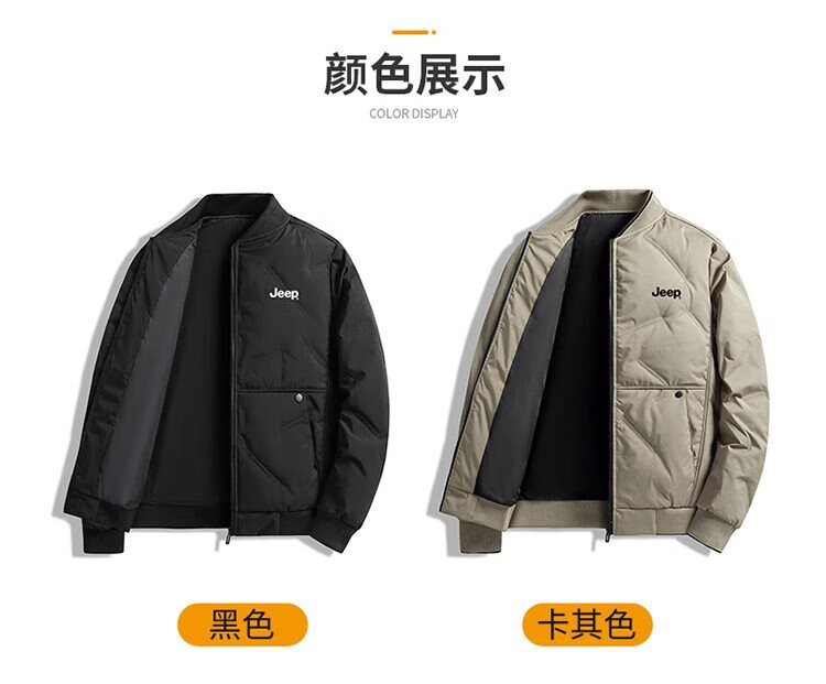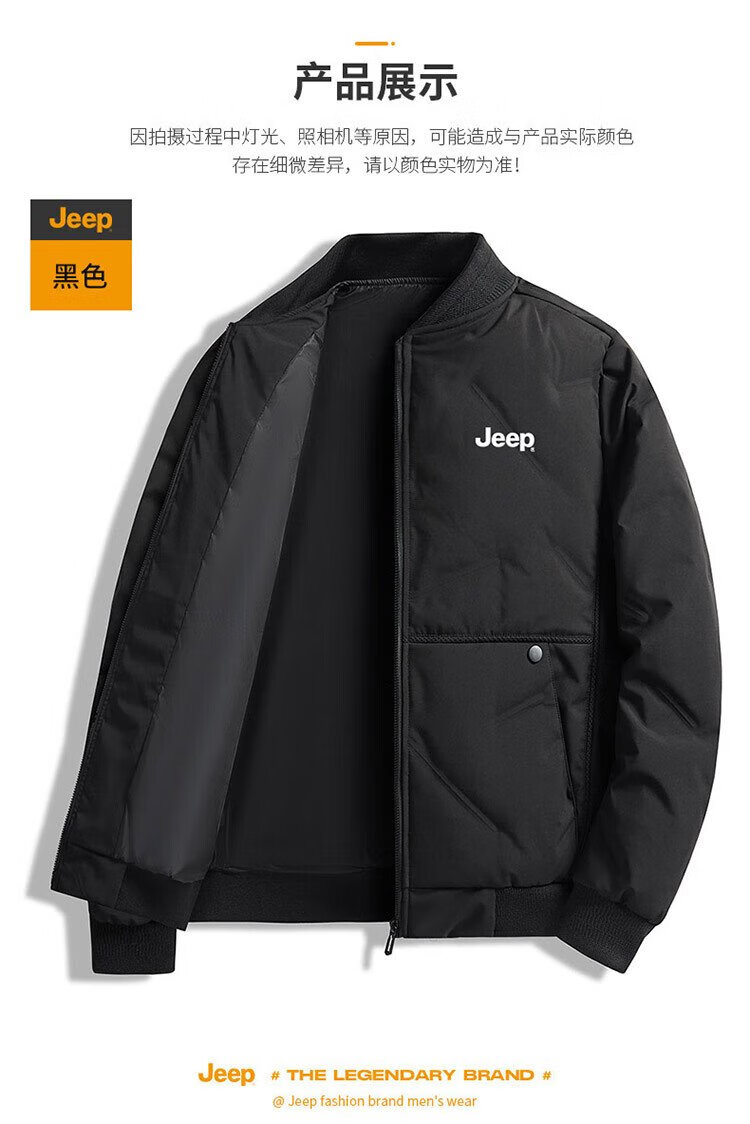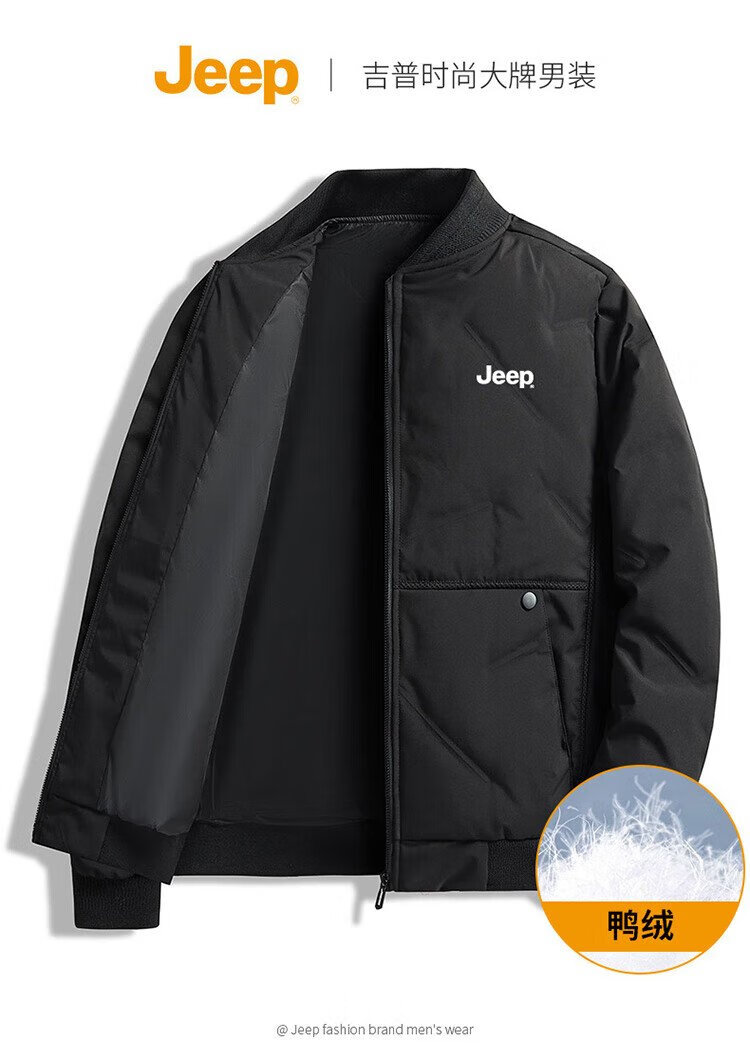Jeep (JEEP) down jacket men's winter short casual baseball collar jacket men's warm trendy brand clothes men's black XL