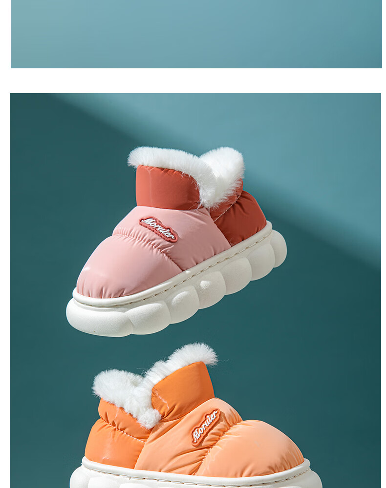 LA CHAPELLE HOMME parent-child children's indoor and outdoor home warm non-slip soft-soled plush cotton slippers 28 pink 34-35