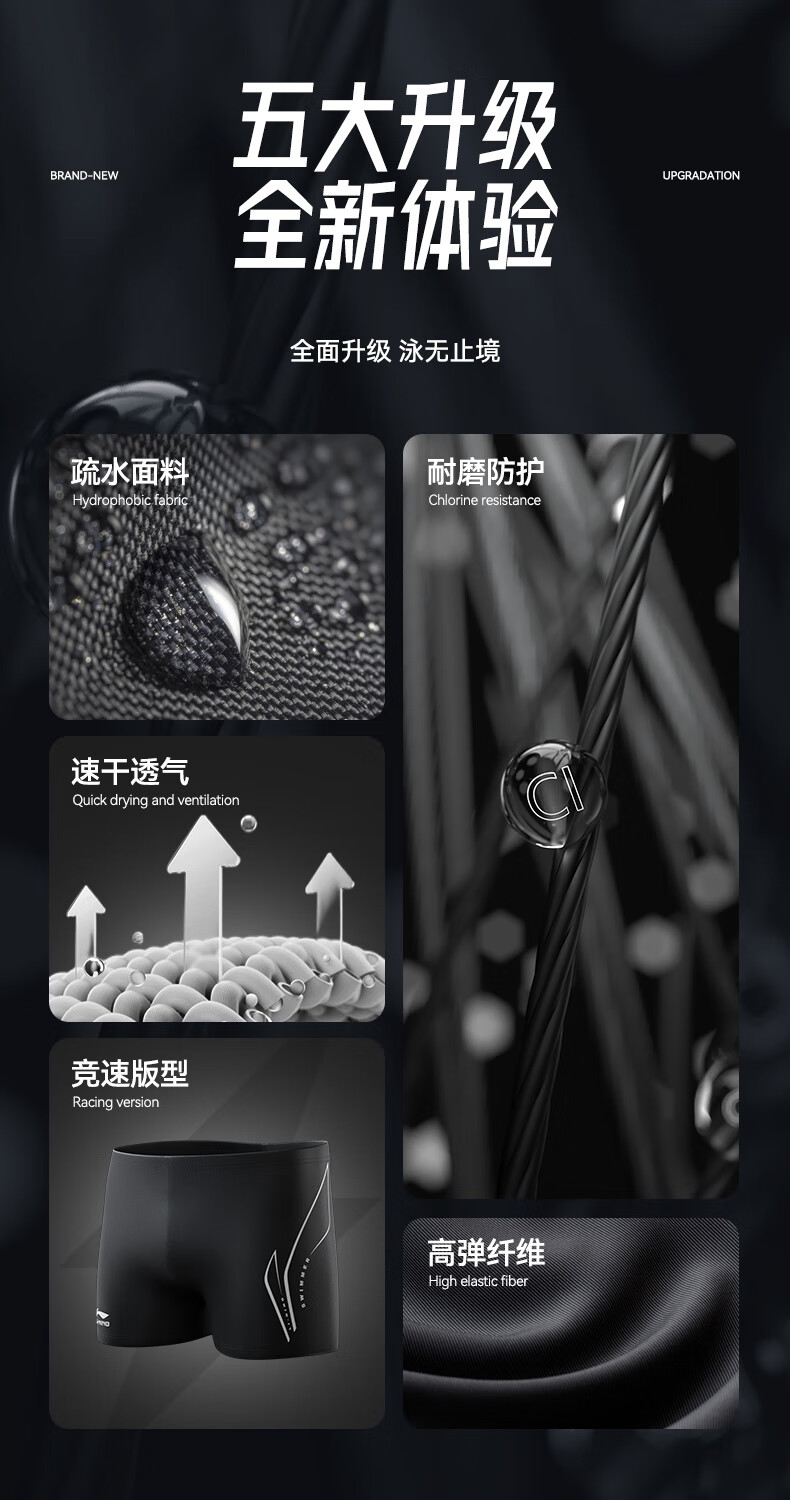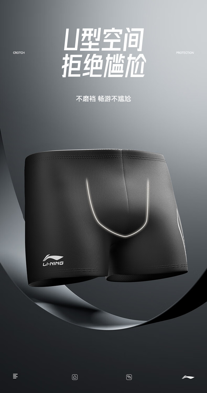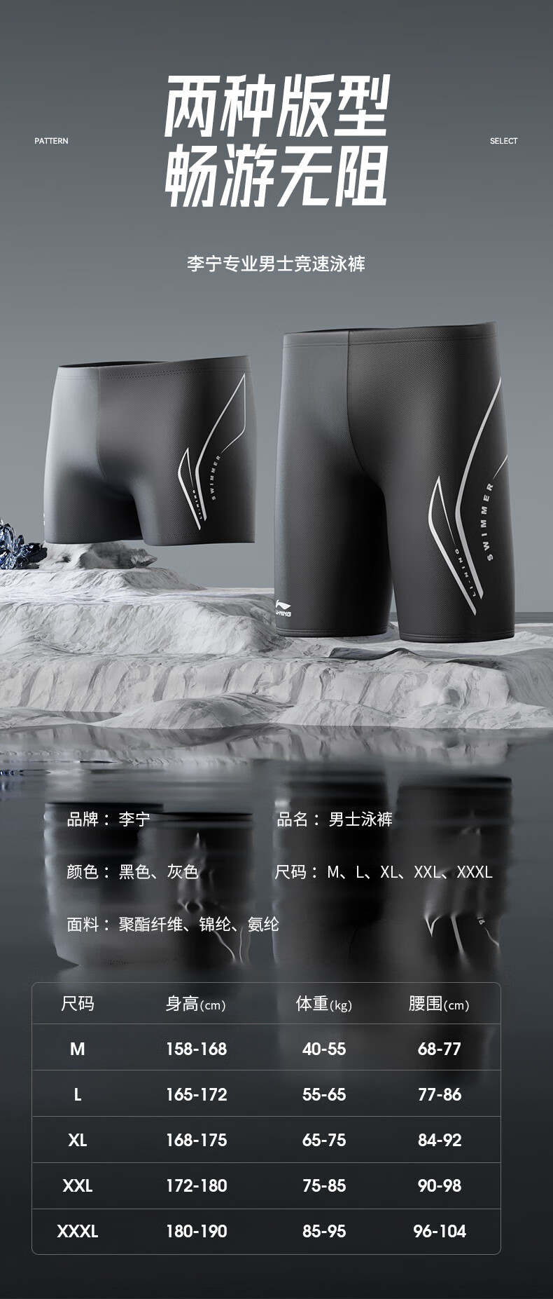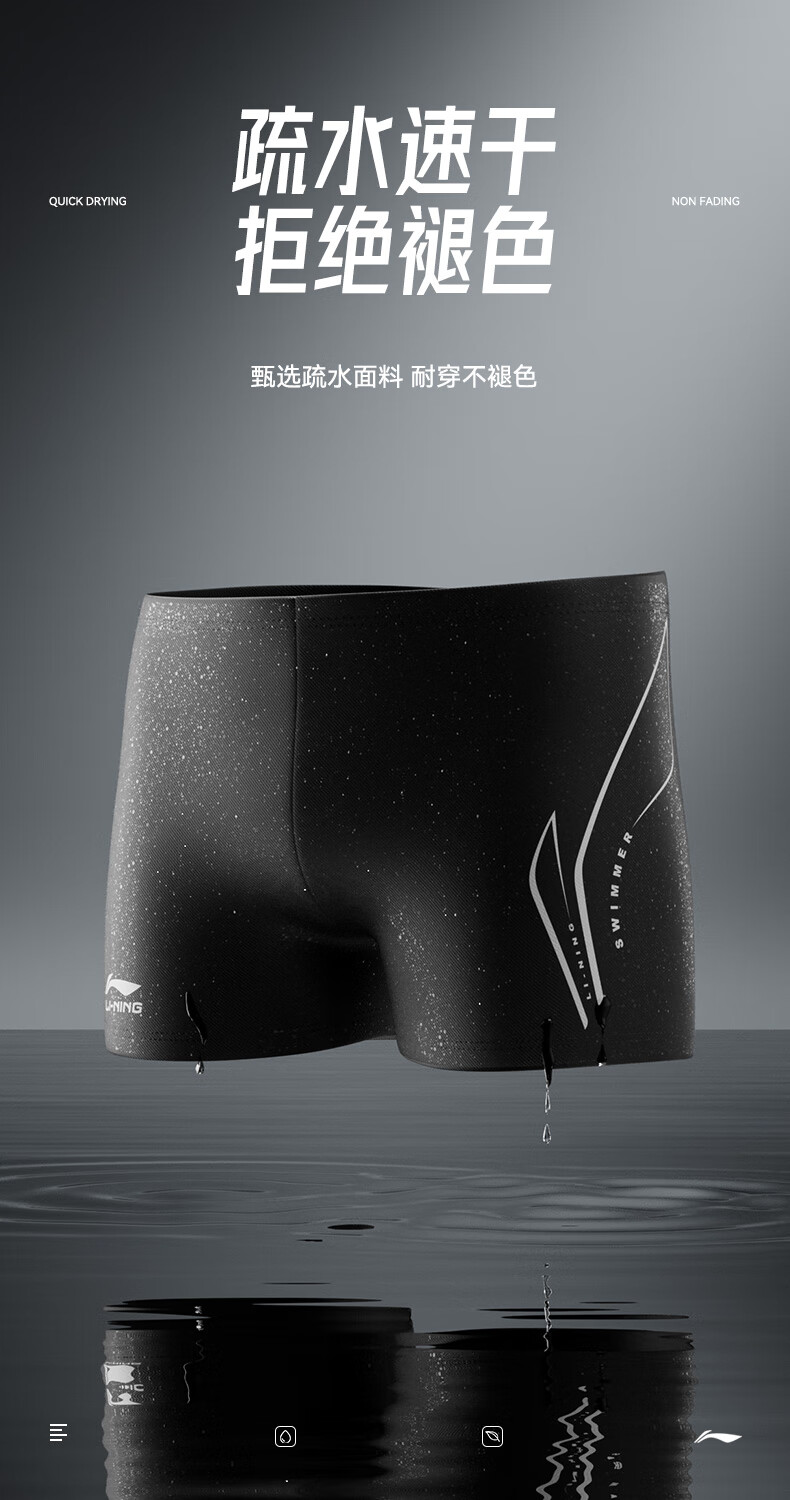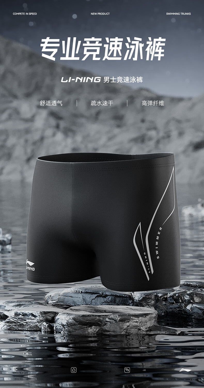 LI-NING swimming trunks men's anti-embarrassment minimalist swimsuit five-point training swimming trunks 3031 black XL