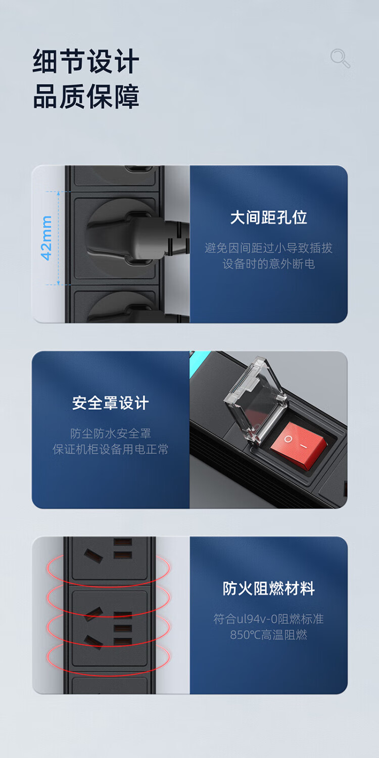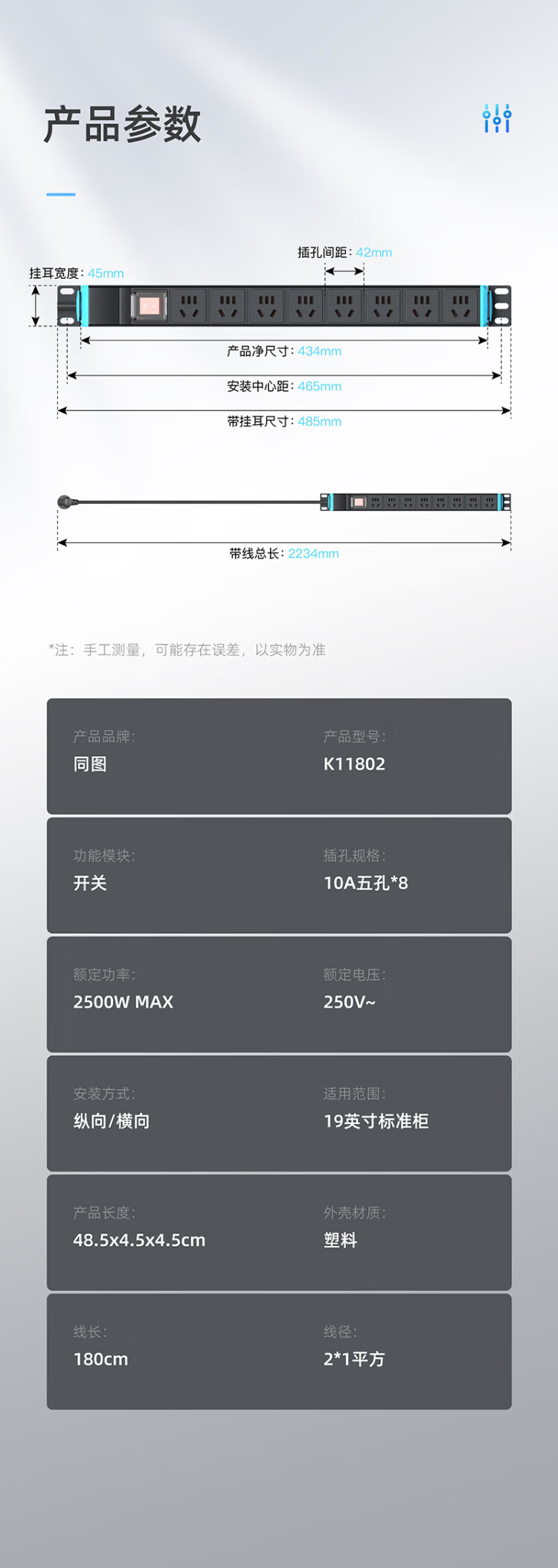Same picture PDU plug-in strip 1.8 meters 8 holes 10A cabinet PDU socket Computer room power distributor engineering expansion pdu industrial socket plug-in strip master control switch K11802