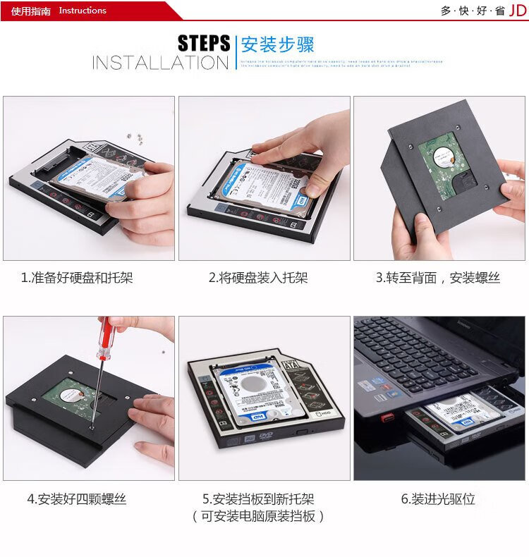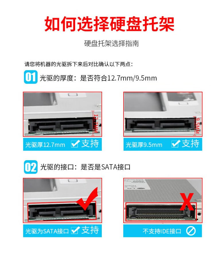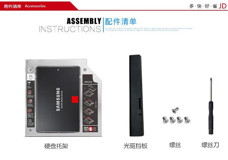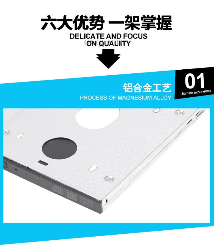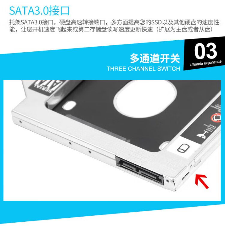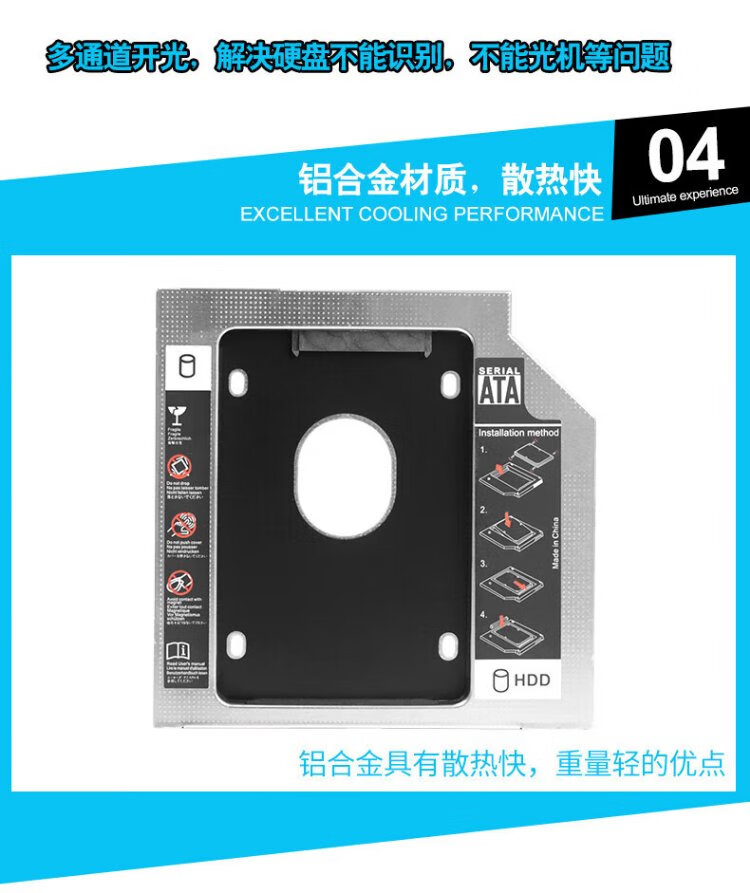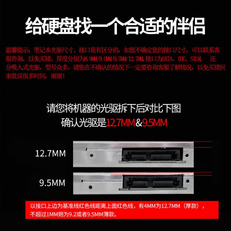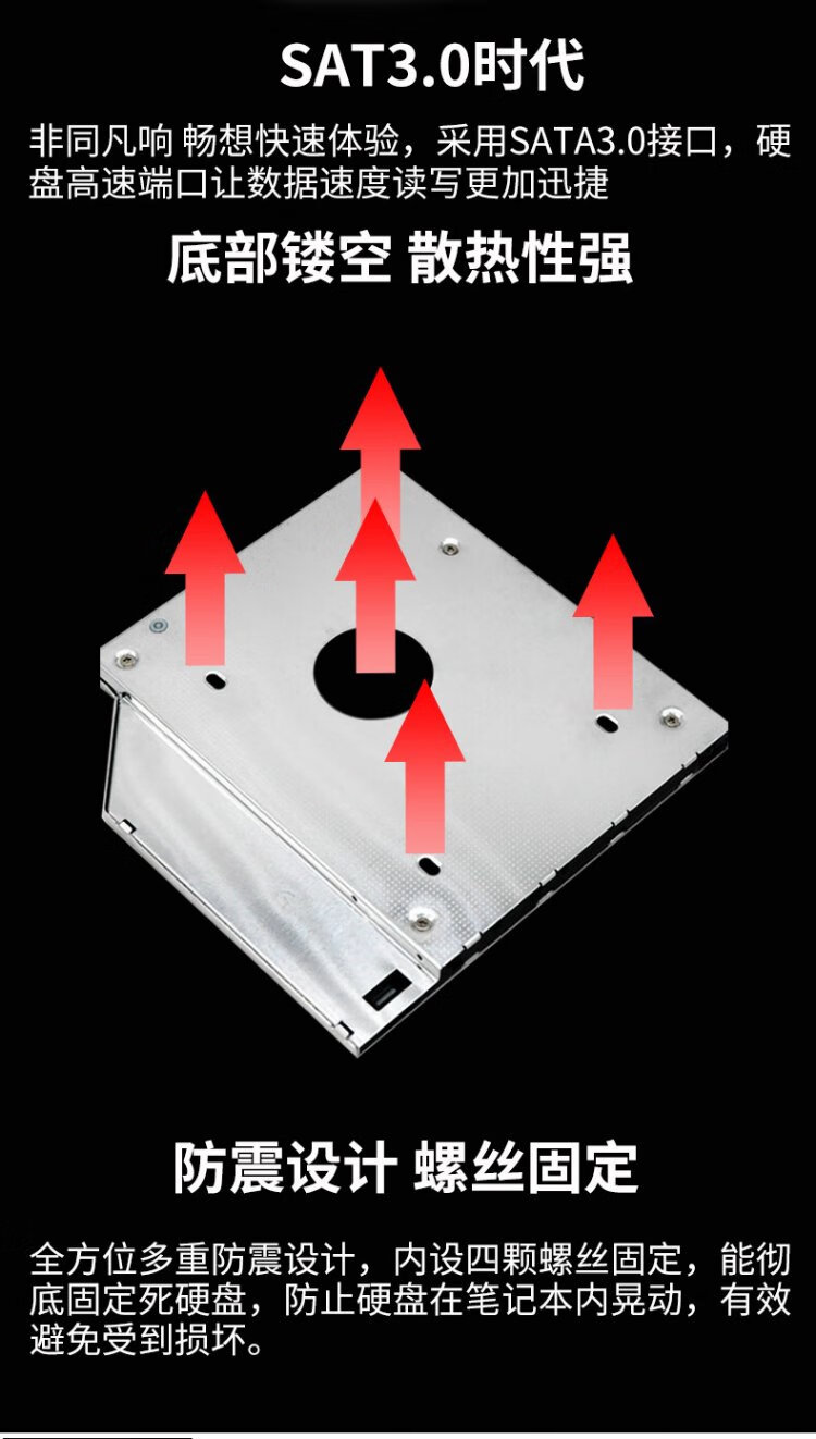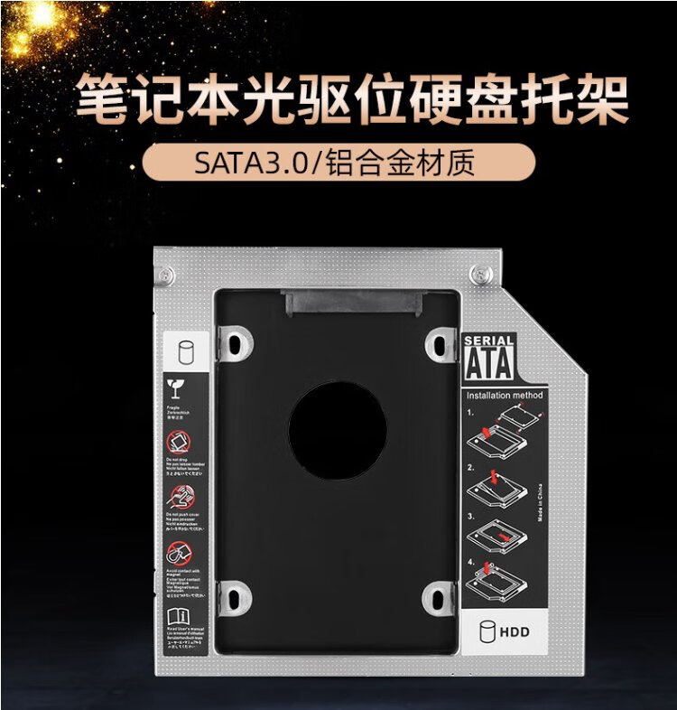 Liantuo 12.7mm notebook optical drive slot SATA hard drive bracket hard drive bracket black + silver (suitable for SSD solid state drive Z105