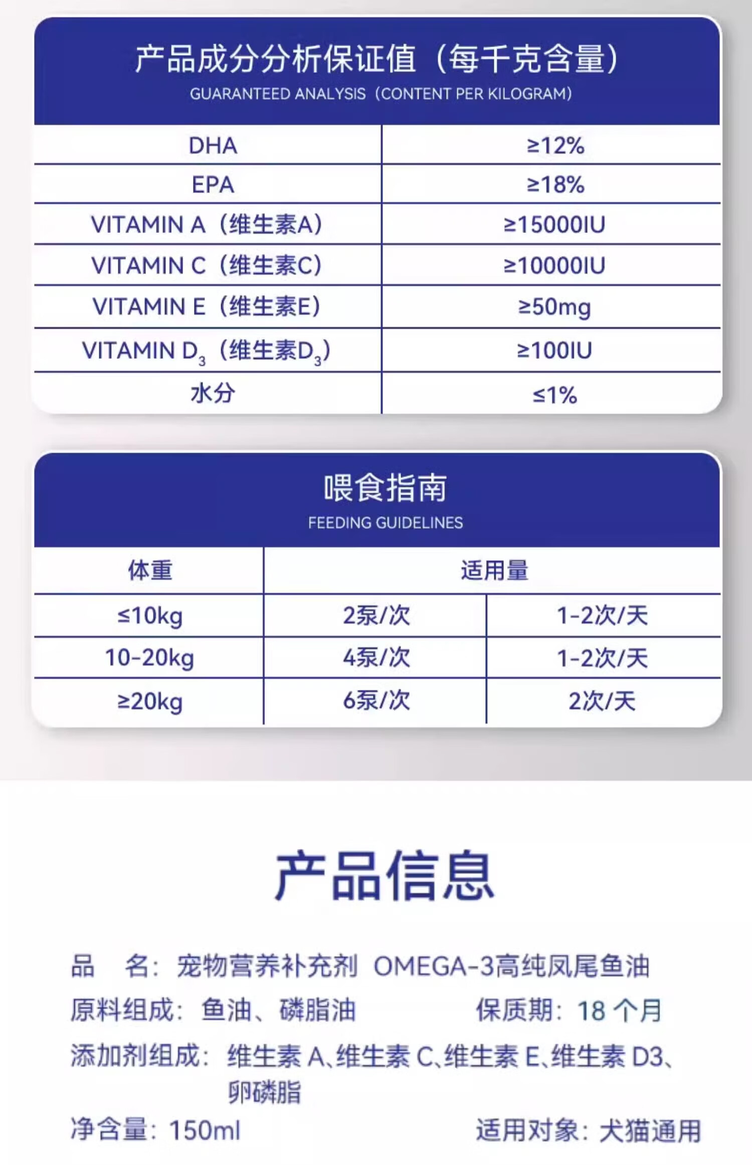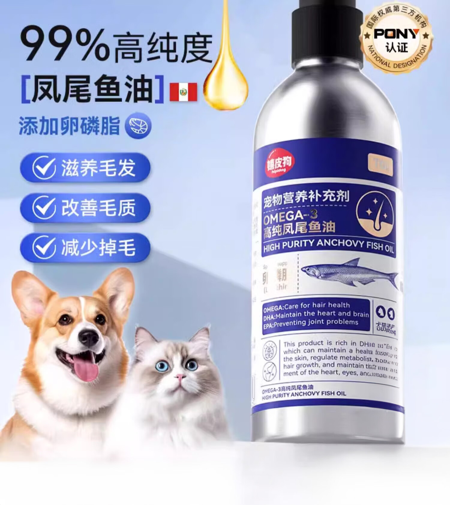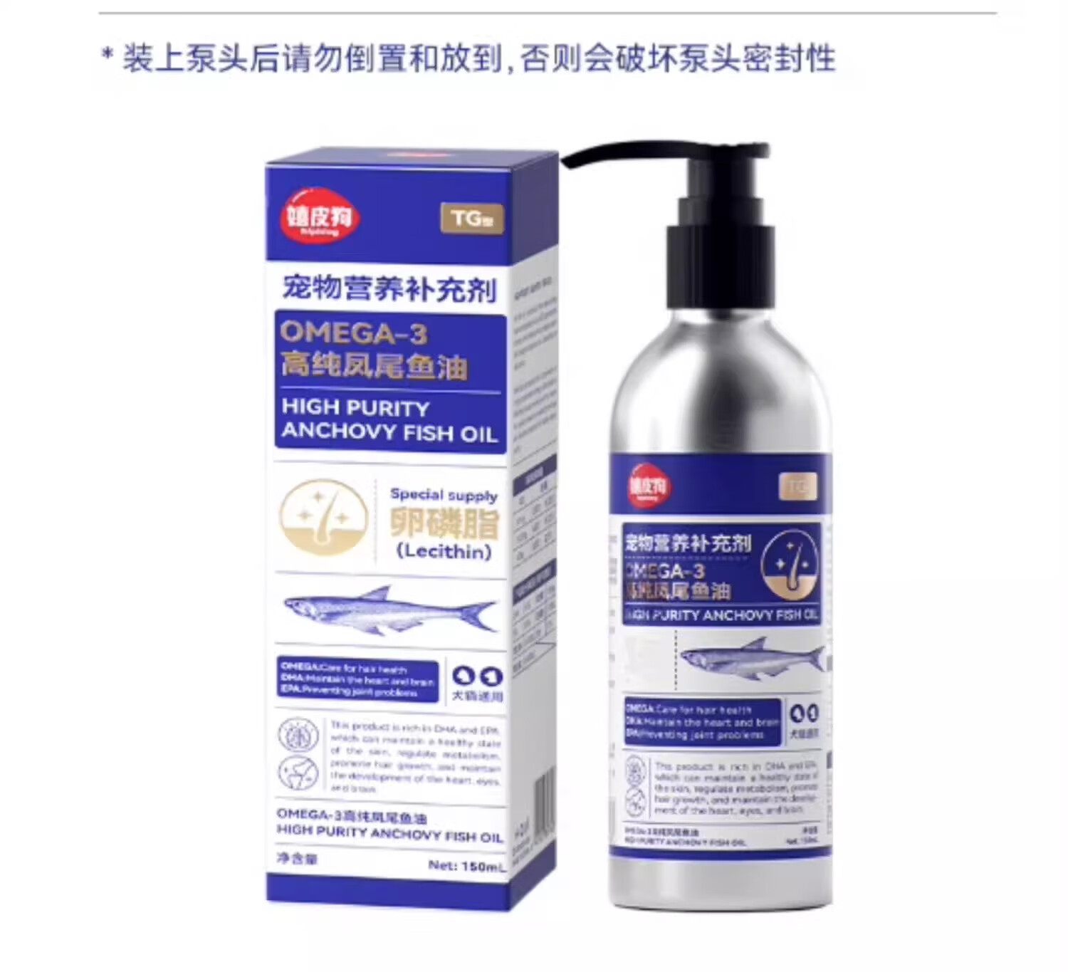 Hippie Dog 99% high concentration press-type liquid fish oil for dogs and cats to beautify and brighten hair, skin care and color 150ml