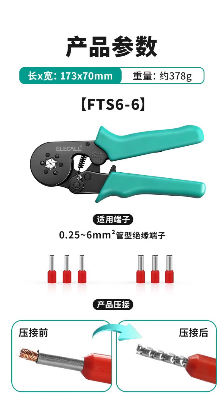 ELECALL insulated pin terminal crimping pliers cold crimping pliers multifunctional terminal pliers FTS6-6 (0.08-6mm)