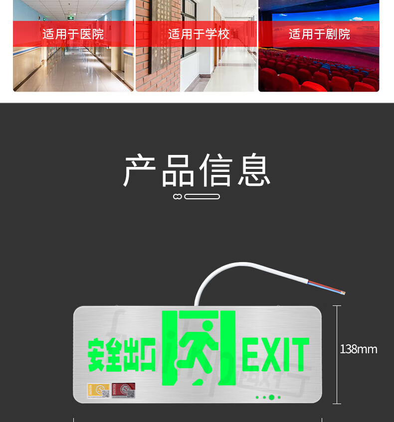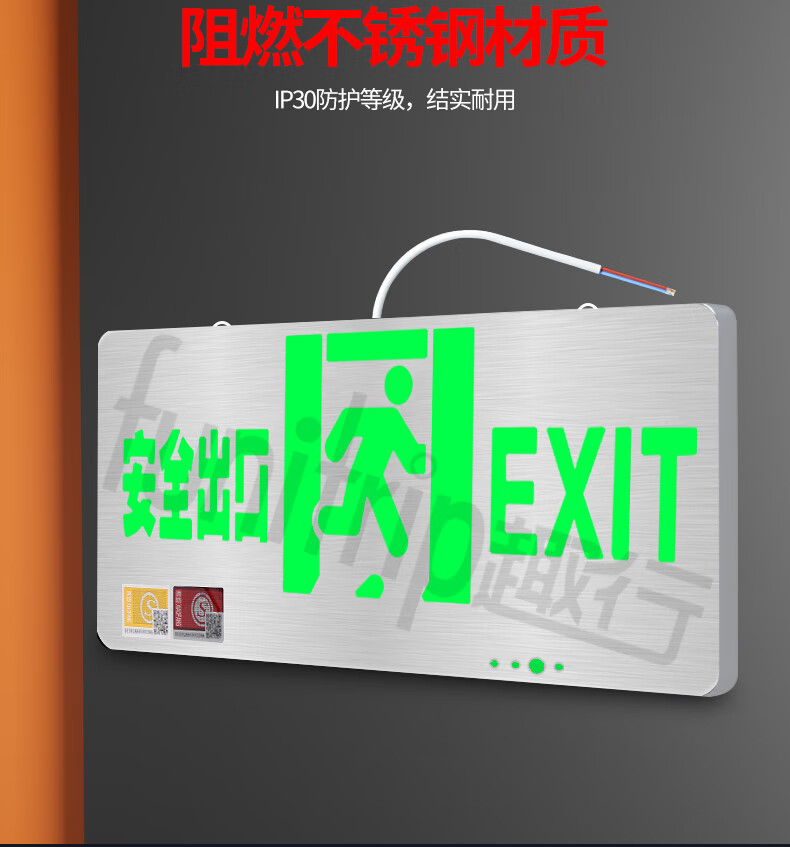 Quxing safety exit sign stainless steel LED emergency evacuation sign floor fire emergency light single side forward