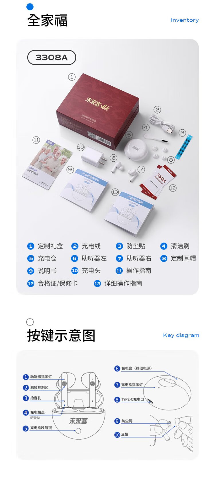 Future guest (vlk) hearing aid, special invisible noise reduction hearing aid for the elderly with moderate to severe deafness, 3308A