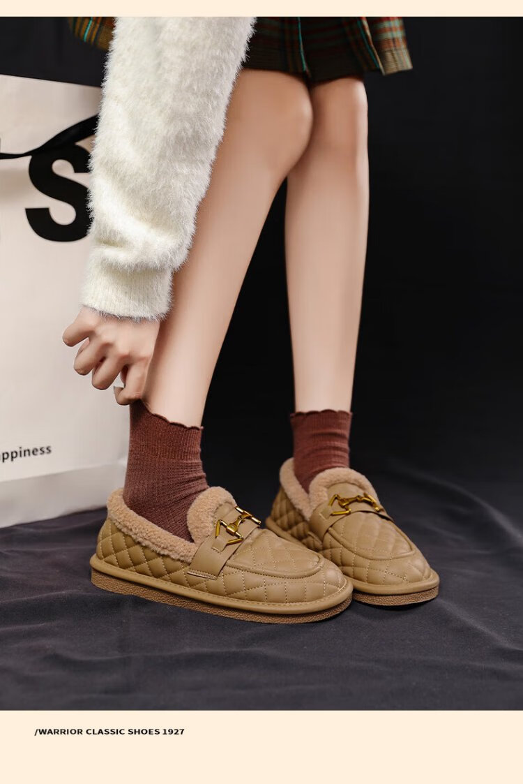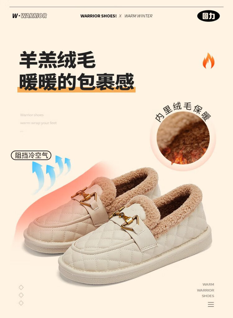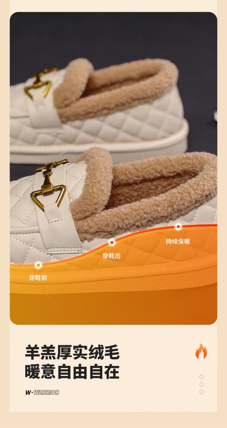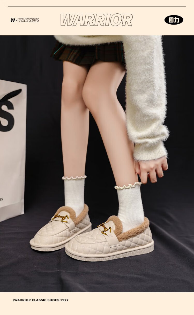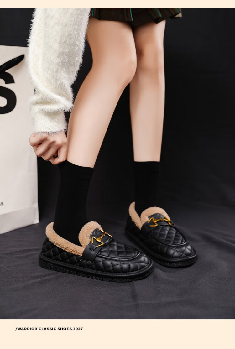 Warrior official beanie shoes for women, winter cold-proof and warm cotton shoes, furry shoes, slip-on loafers, black 38