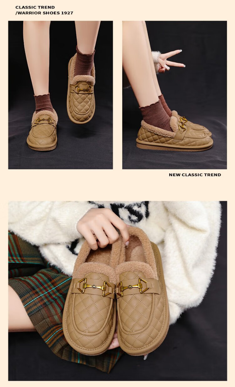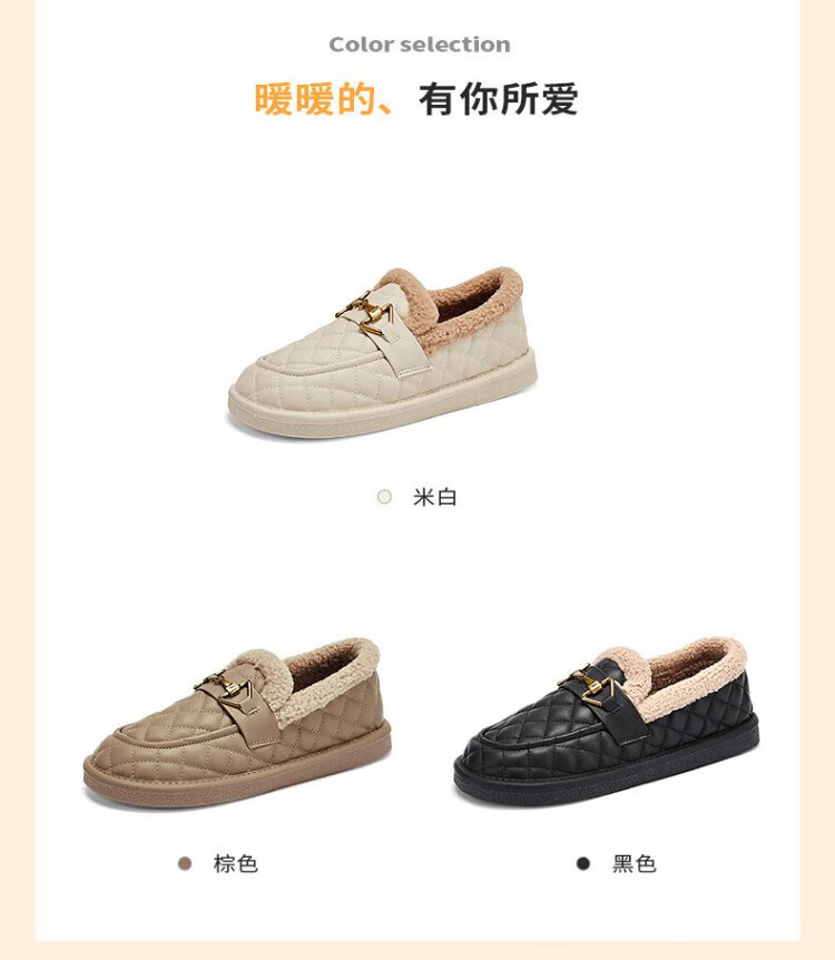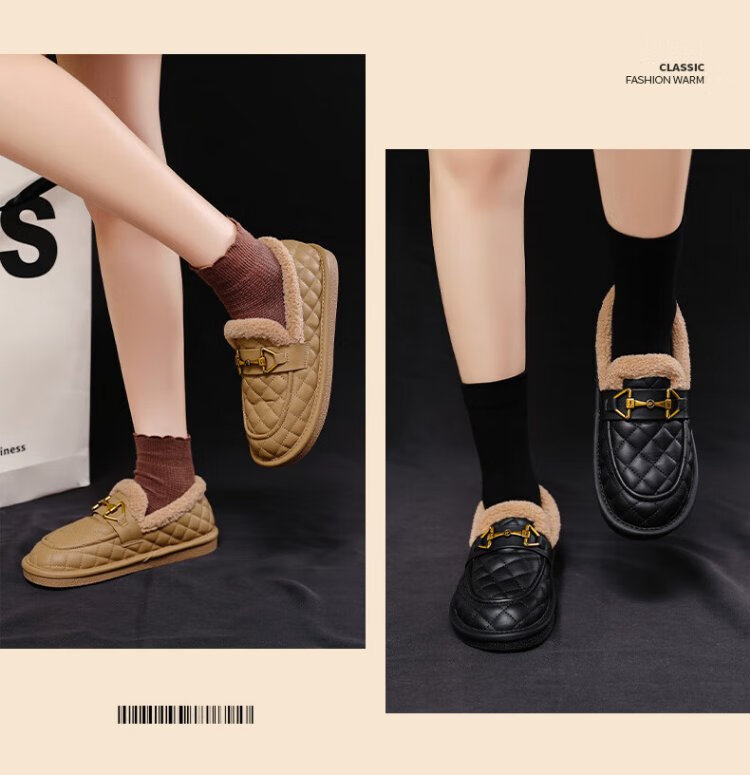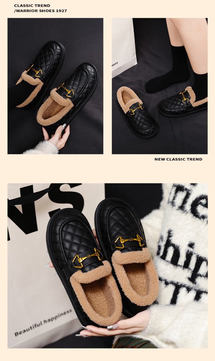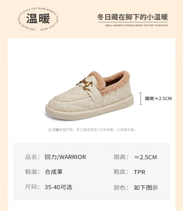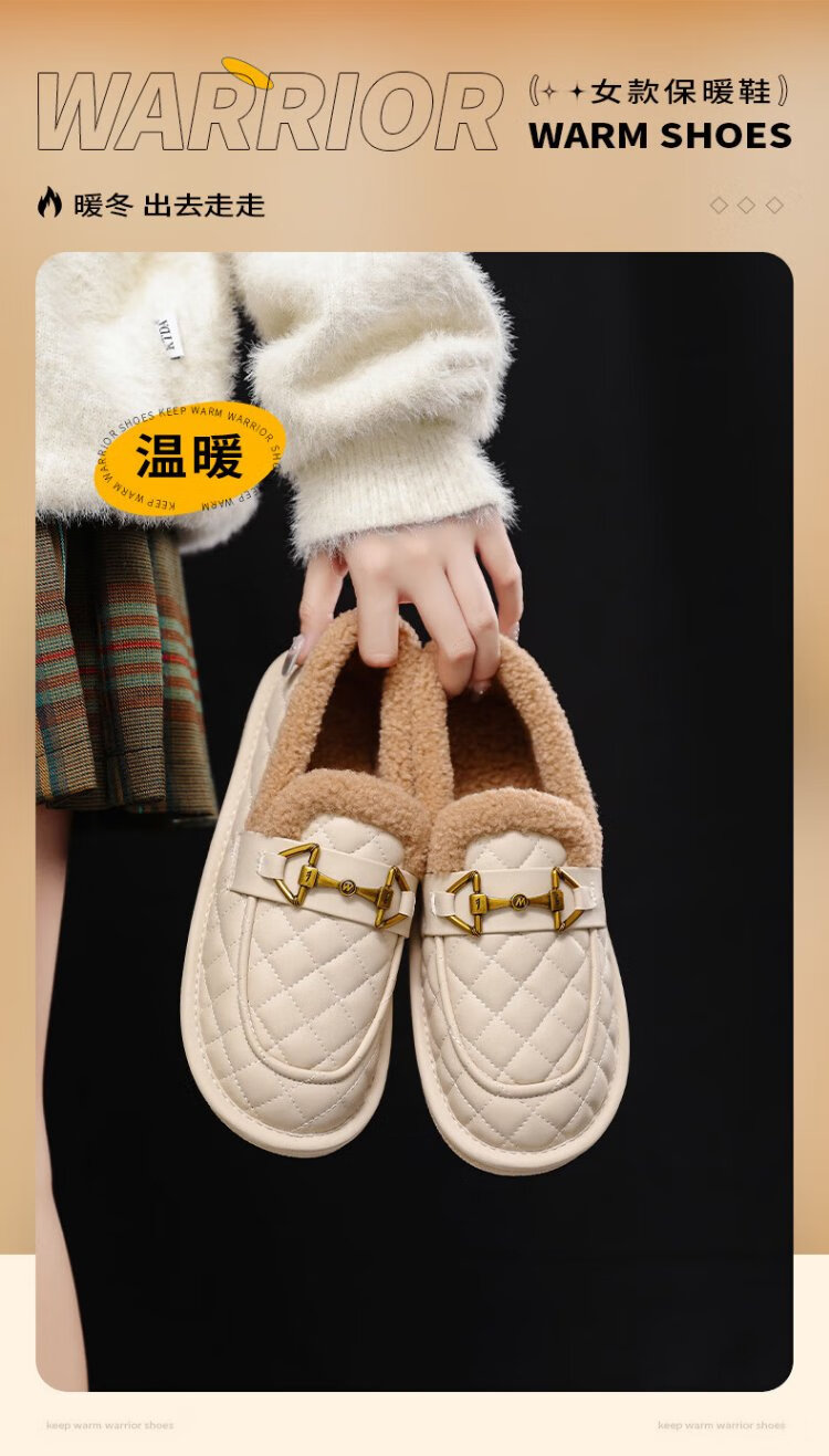 Warrior official beanie shoes for women, winter cold-proof and warm cotton shoes, furry shoes, slip-on loafers, black 38