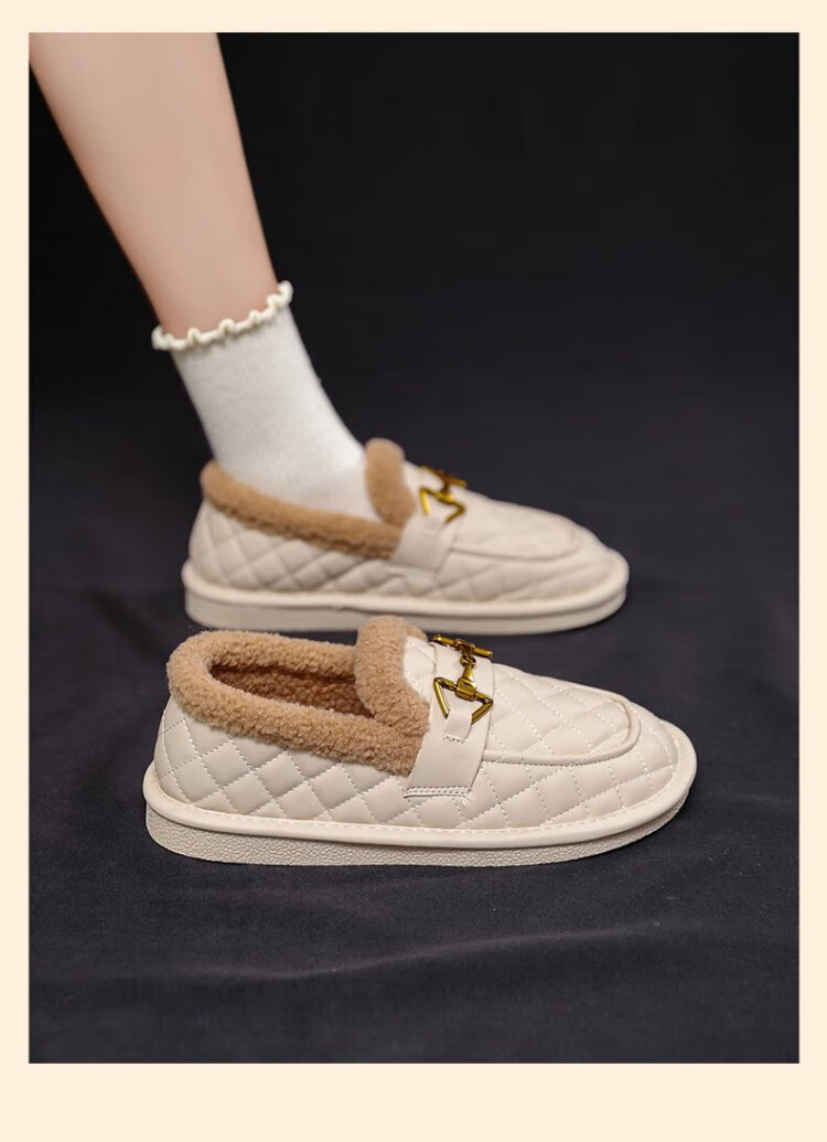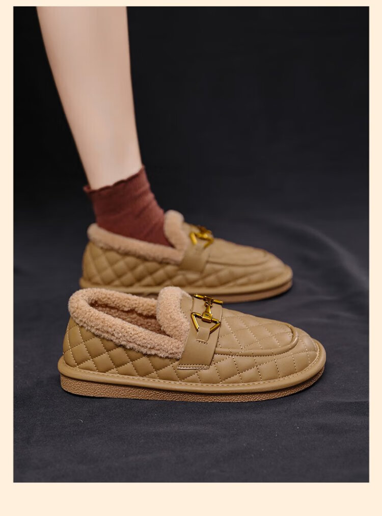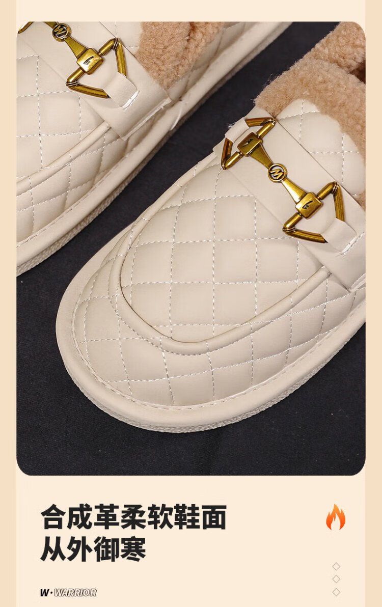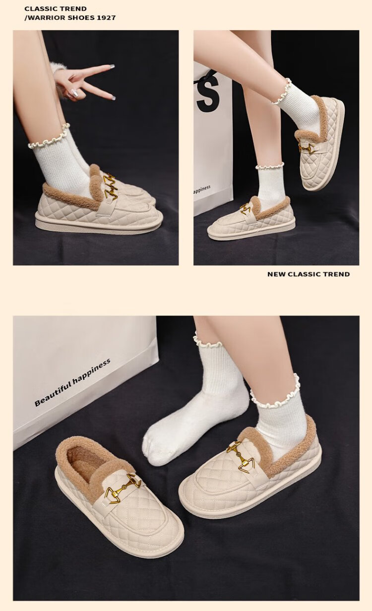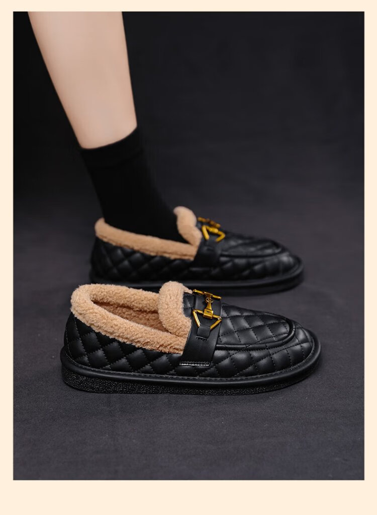 Warrior official beanie shoes for women, winter cold-proof and warm cotton shoes, furry shoes, slip-on loafers, black 38