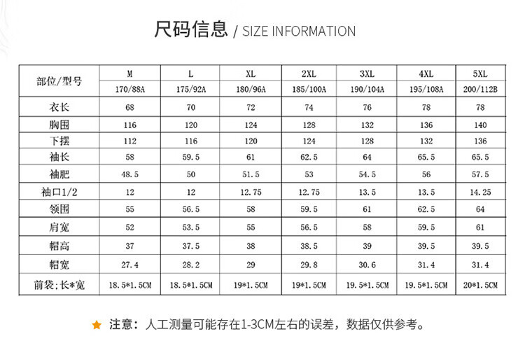 China (cm) 165 / 88-90 170 / 96-98 175 / 108-110 180 / 118-122 185 / 126-130