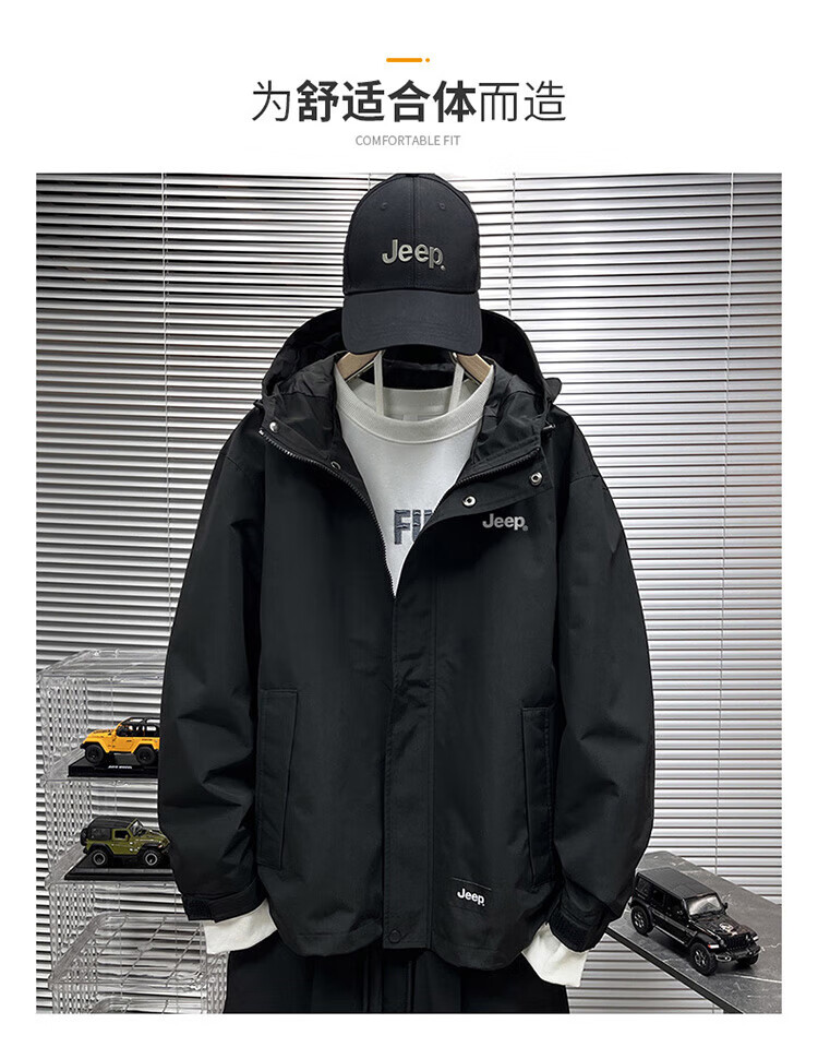 Jeep (JEEP) jacket men's coat autumn and winter casual loose assault work clothes men's black cotton XL