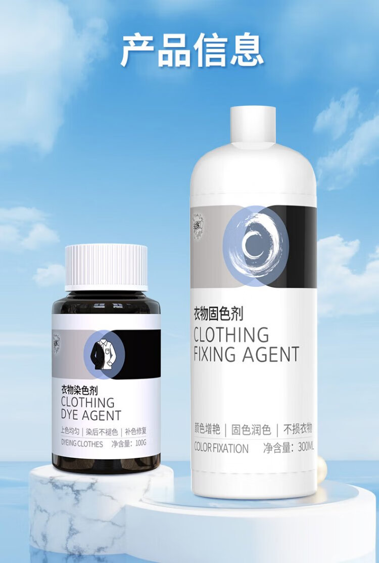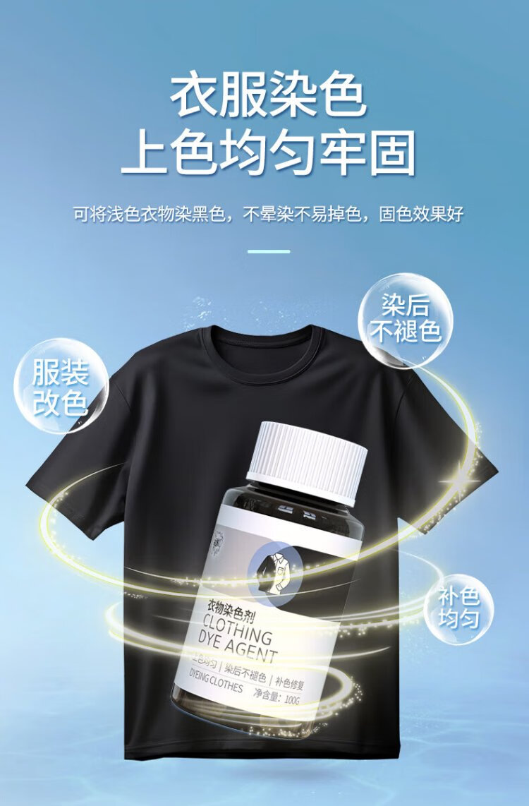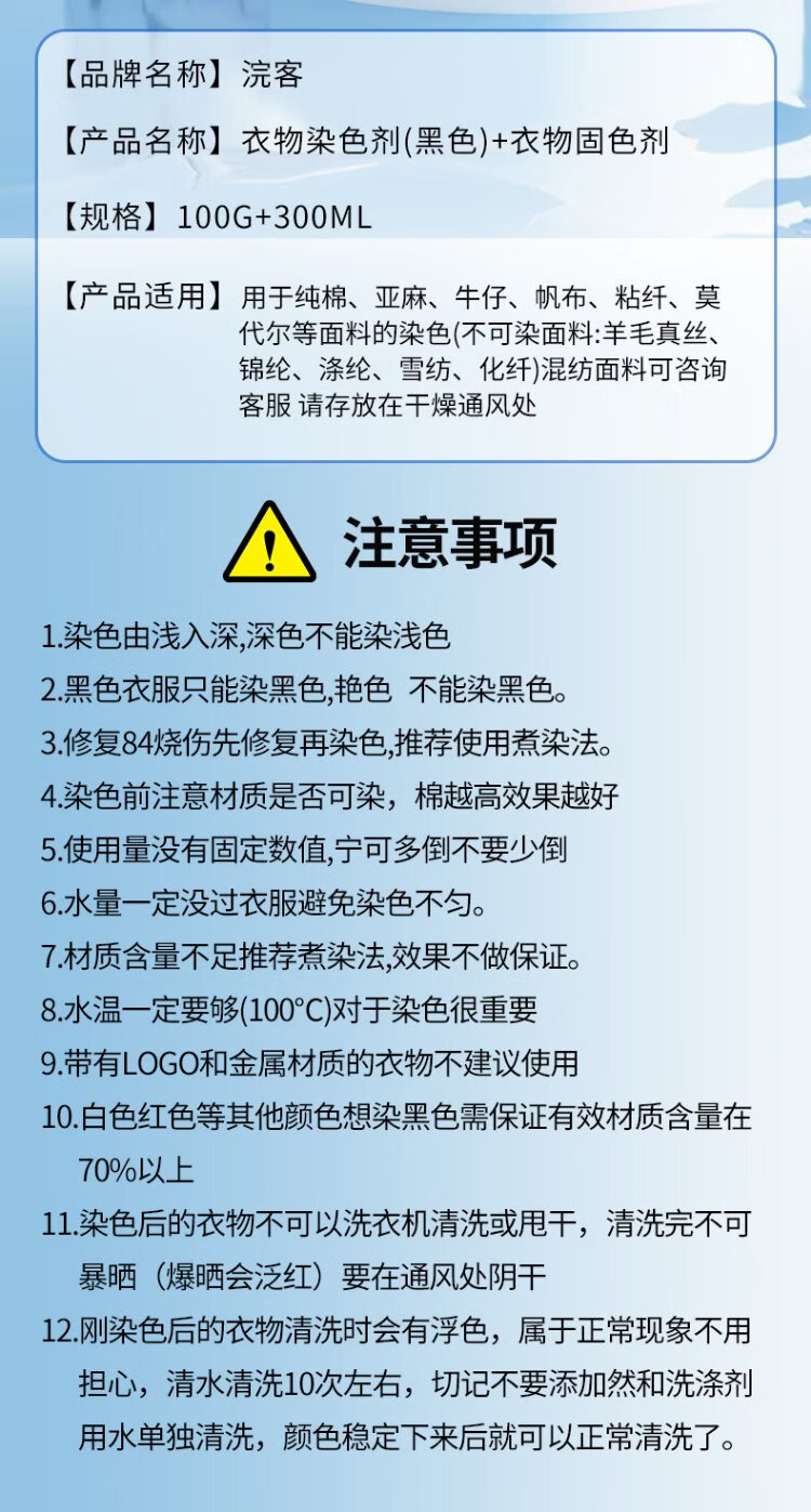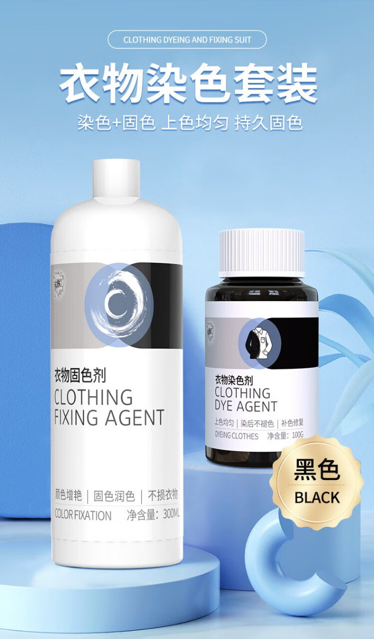 Huanke Clothes Dye 100g + Color Fixing Agent 300g Black No-cook Dyed Pants Renovation and Color Repair Set