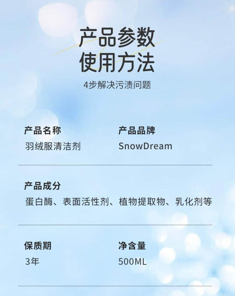 SnowDream Japanese down jacket cleaning agent 500ml water-free artifact cotton clothes dry cleaning agent clothing stubborn stain cleaner