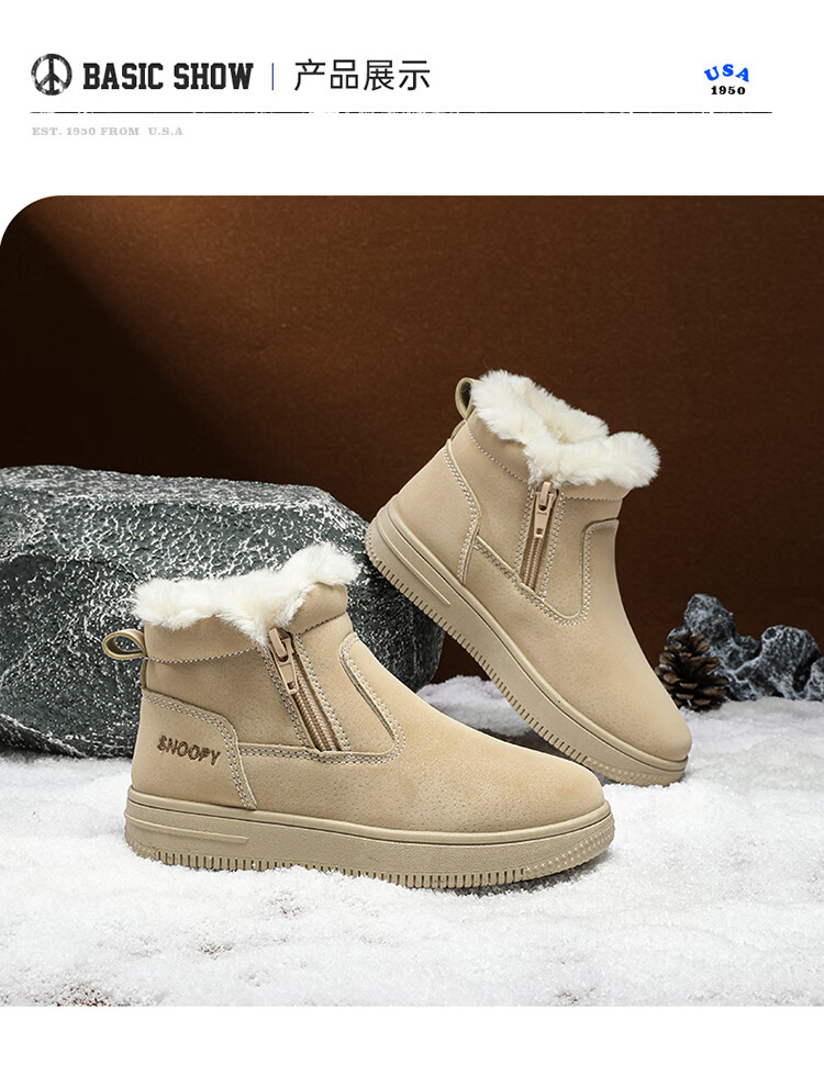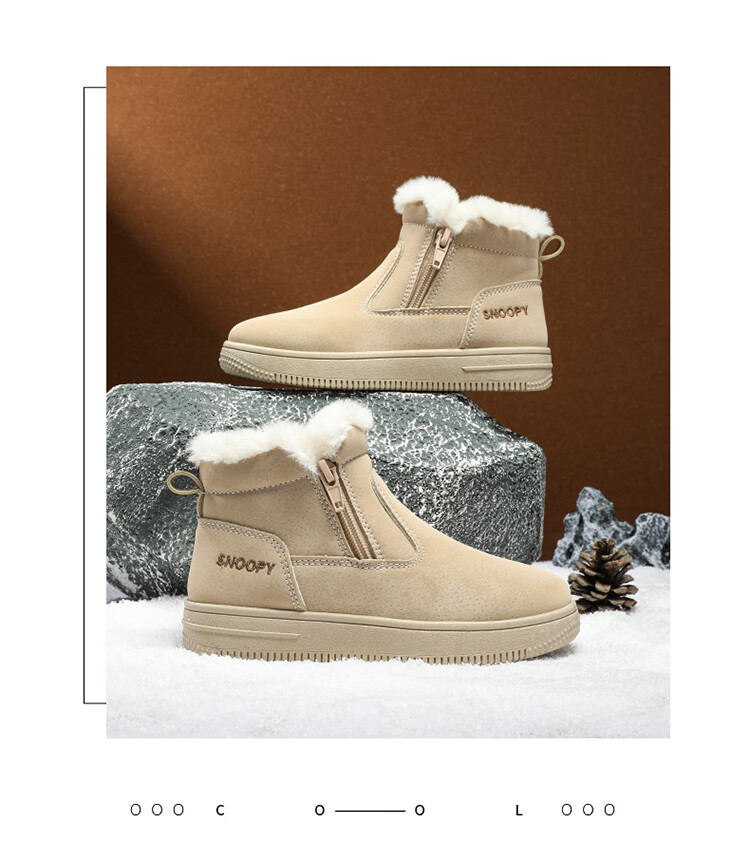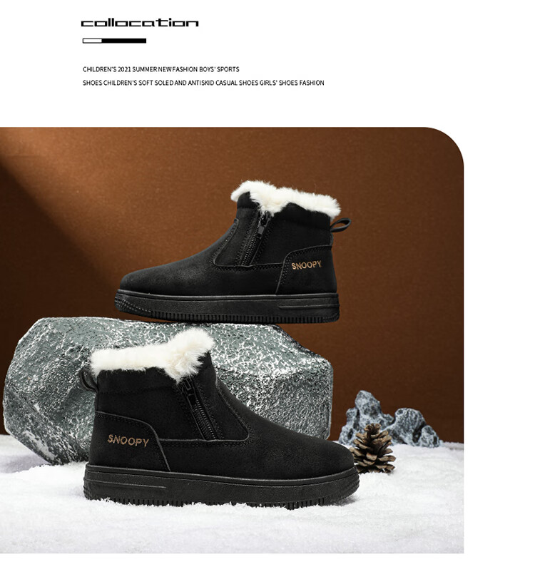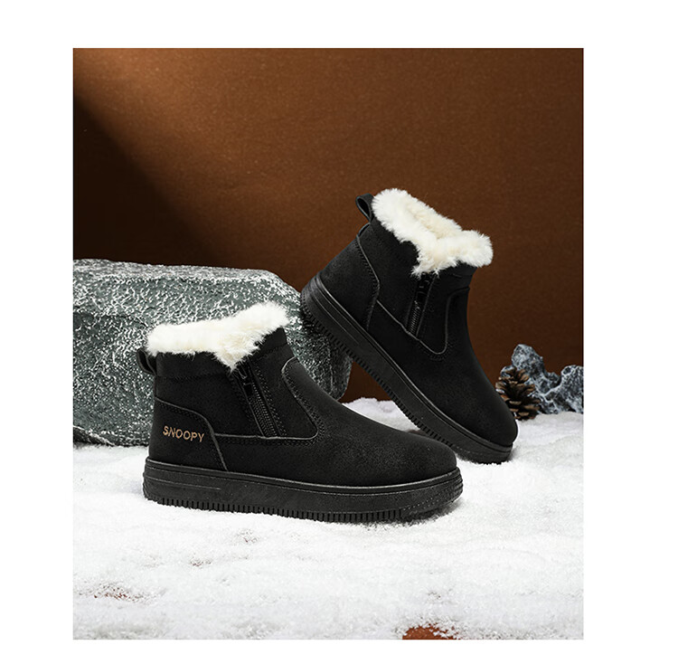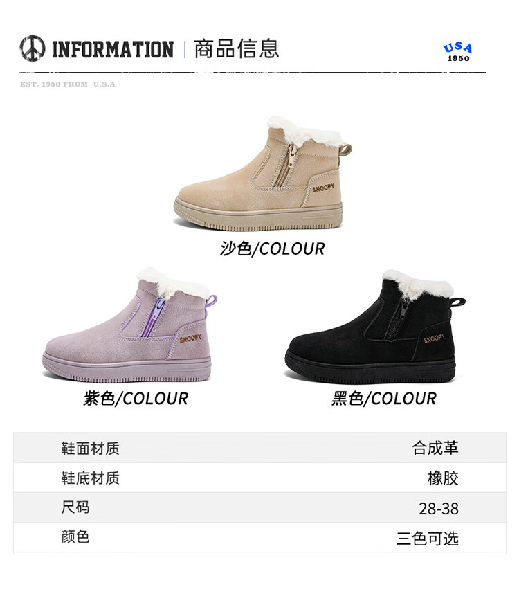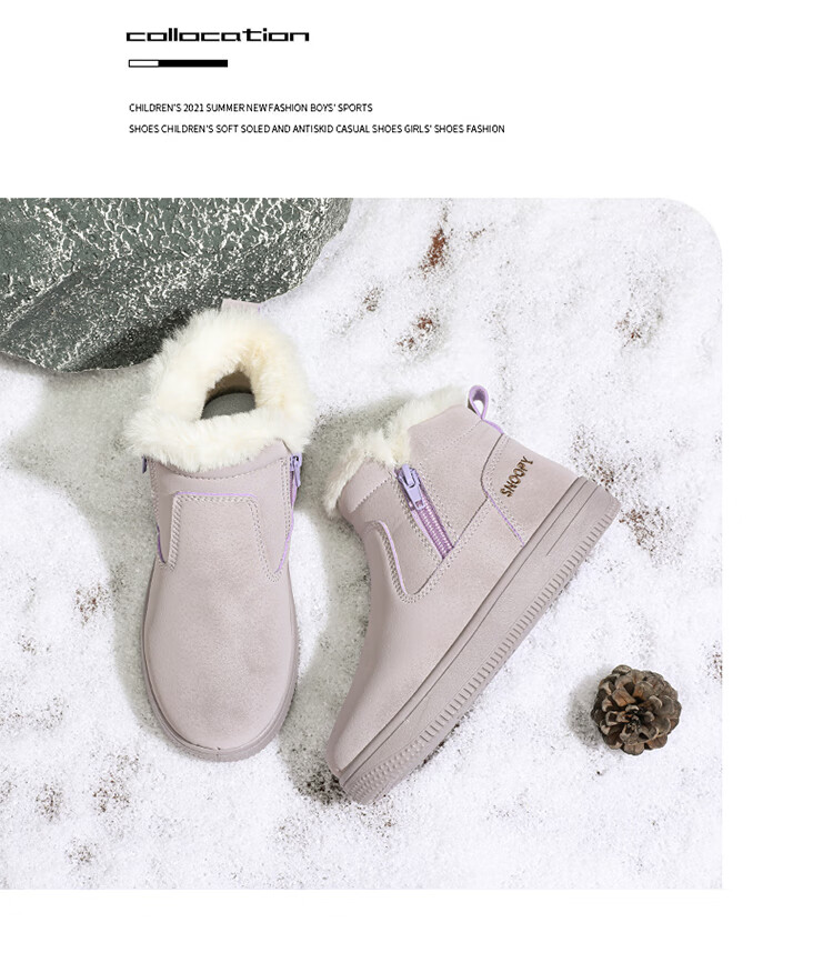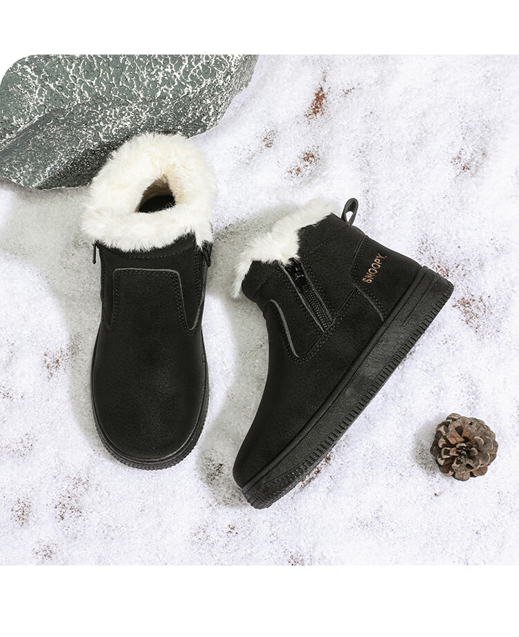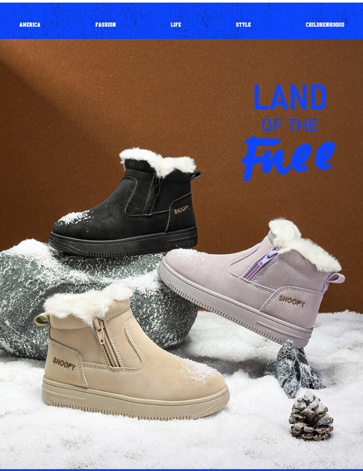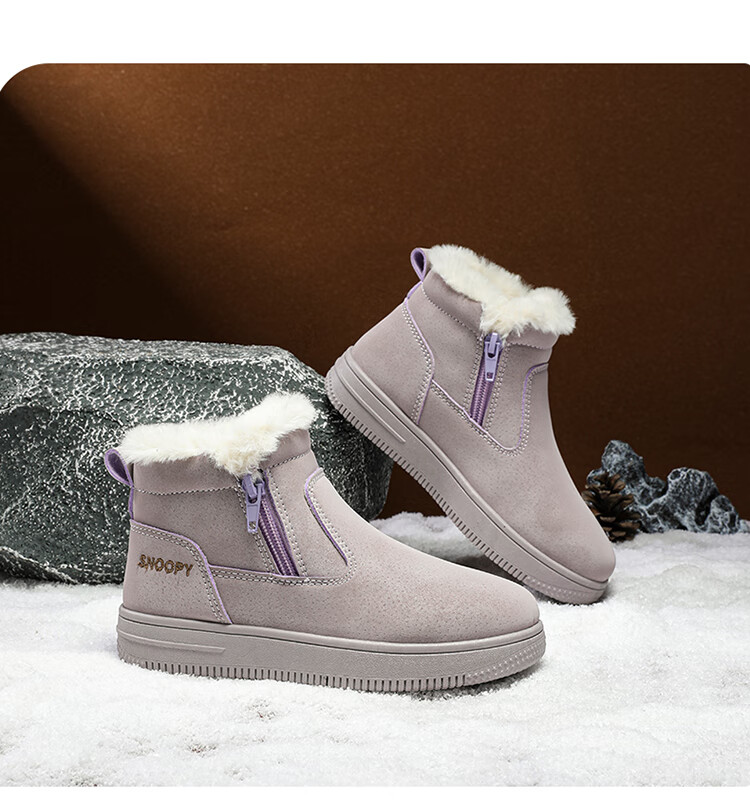 SNOOPY Snoopy children's shoes children's cotton shoes winter velvet thickened cotton boots boys and girls warm short boots 0251 purple 35