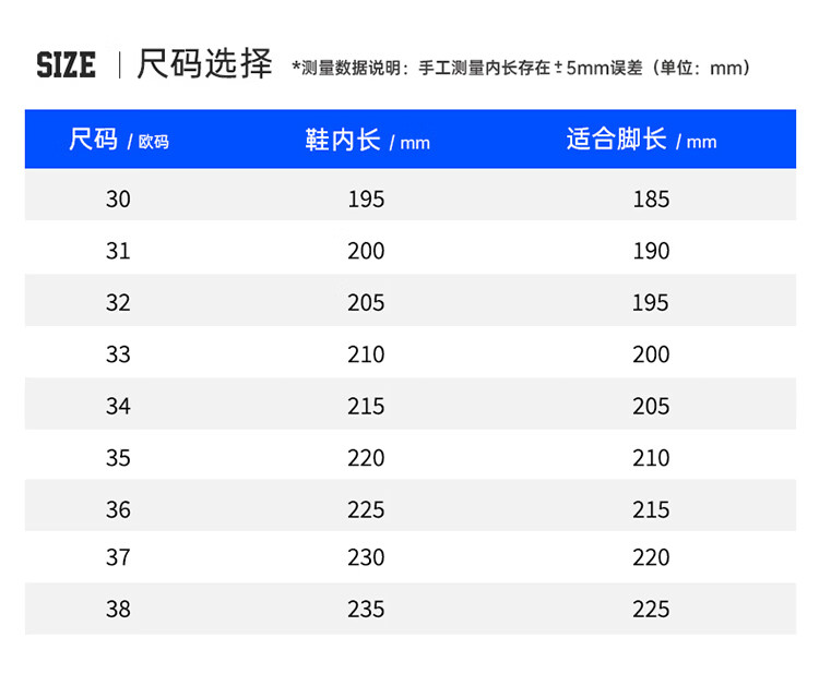 China (cm) 36 - 37 38 - 39 40 - 42 43 - 44 45 - 47