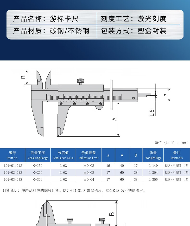 Haliang continuous vernier caliper corrosion-resistant high-quality stainless steel 0-150_0.02mm