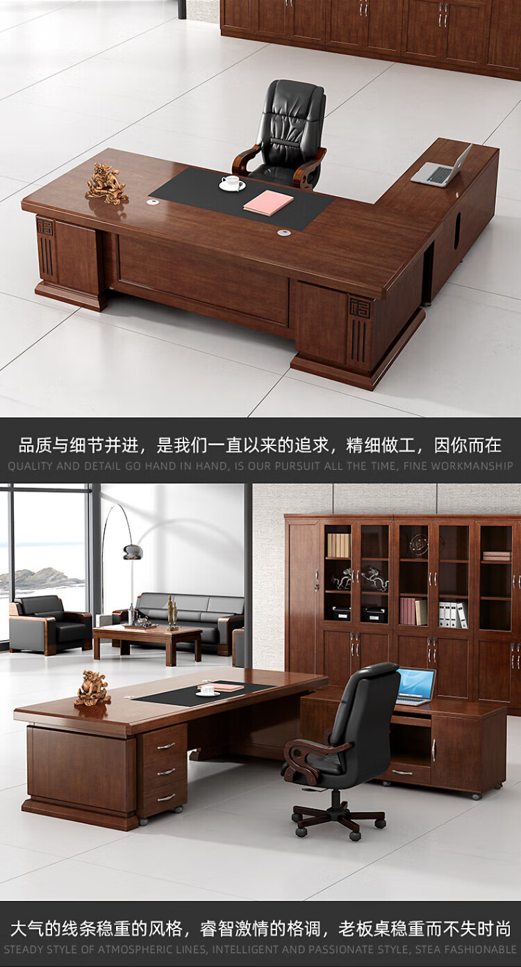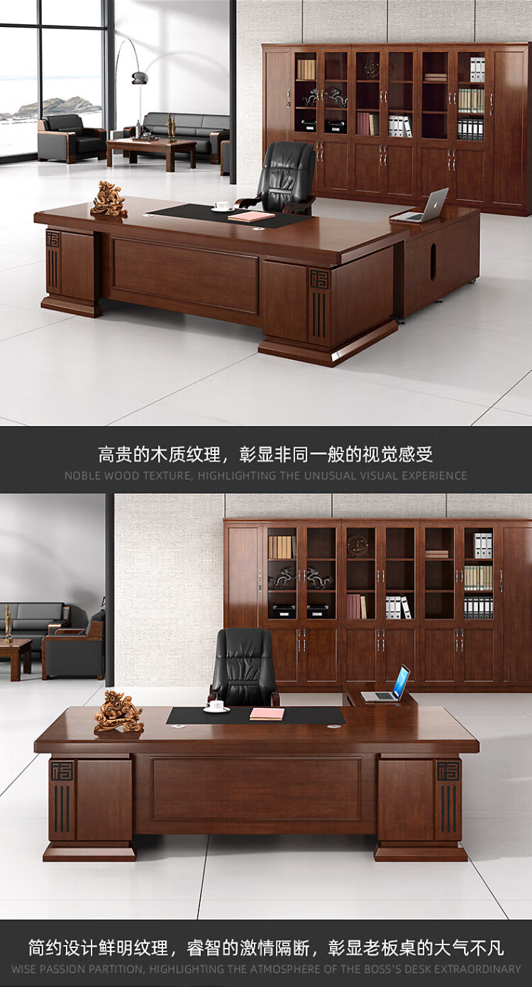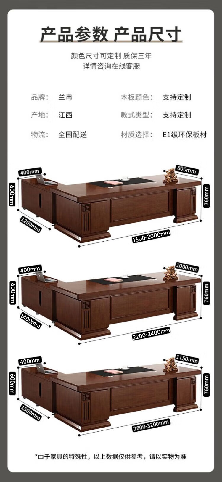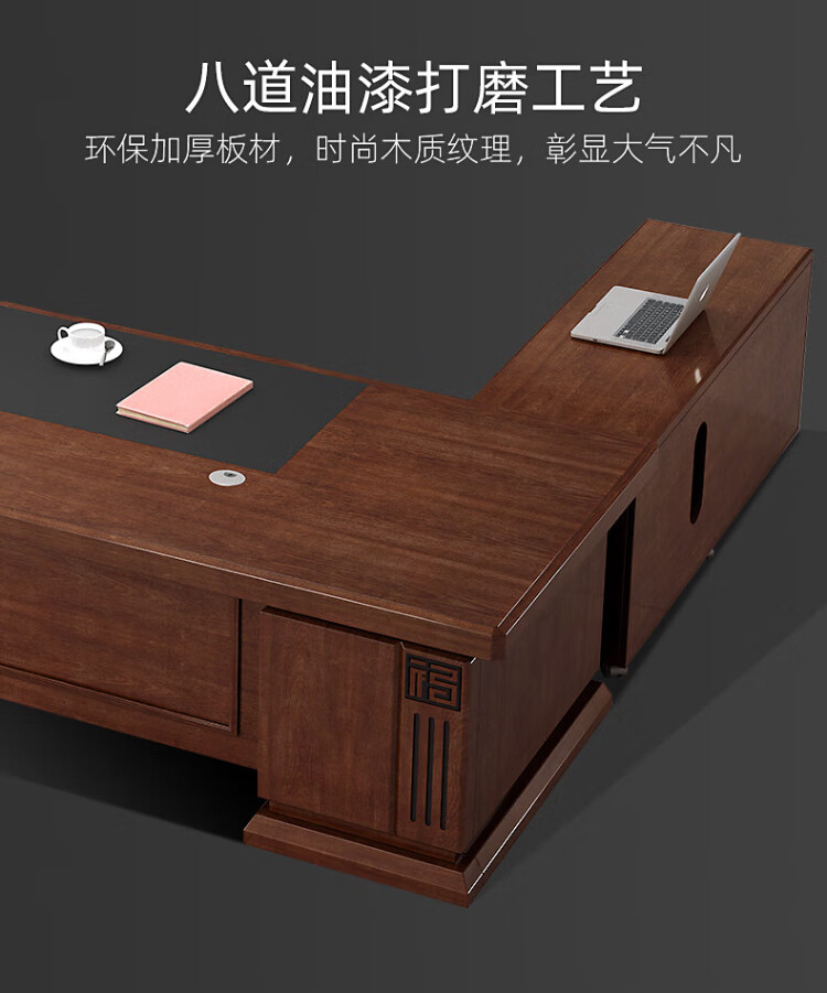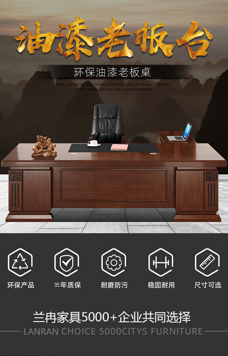 Lanran boss desk solid wood veneer desk president desk high-end paint executive desk 2000*1000mm including side cabinets