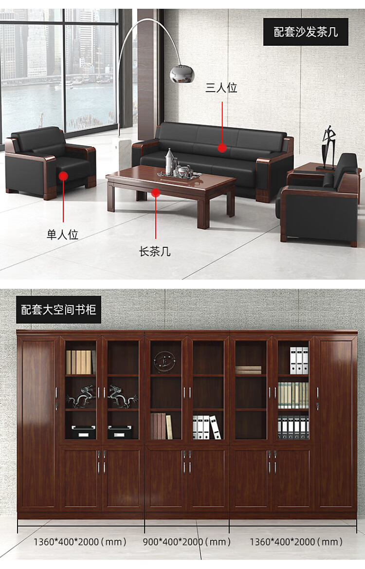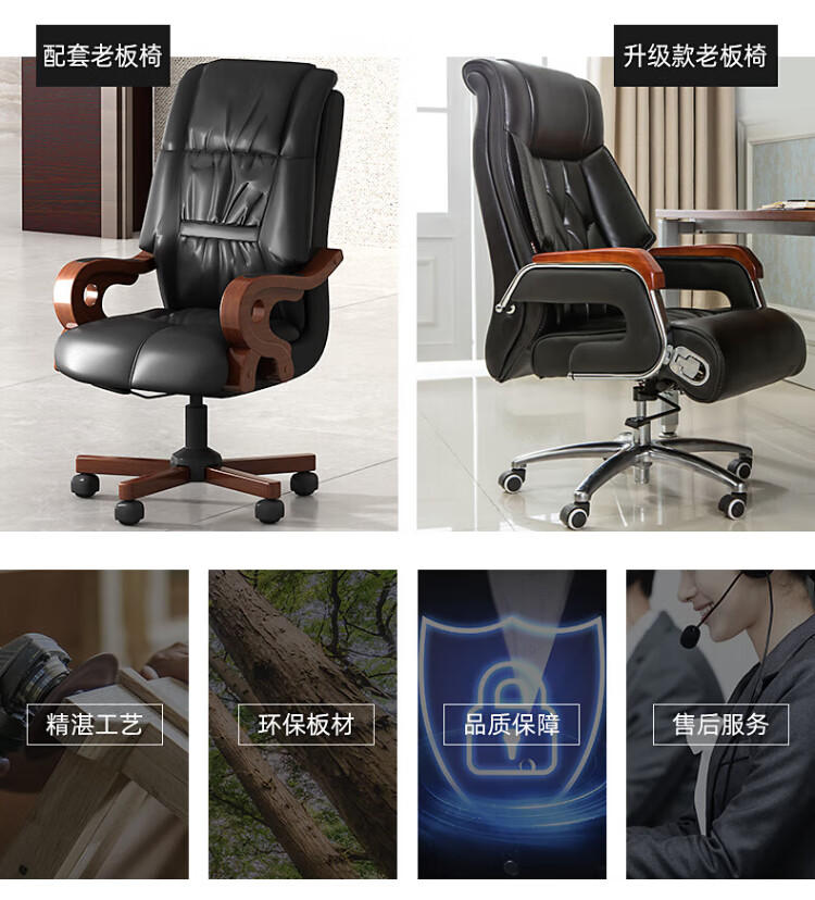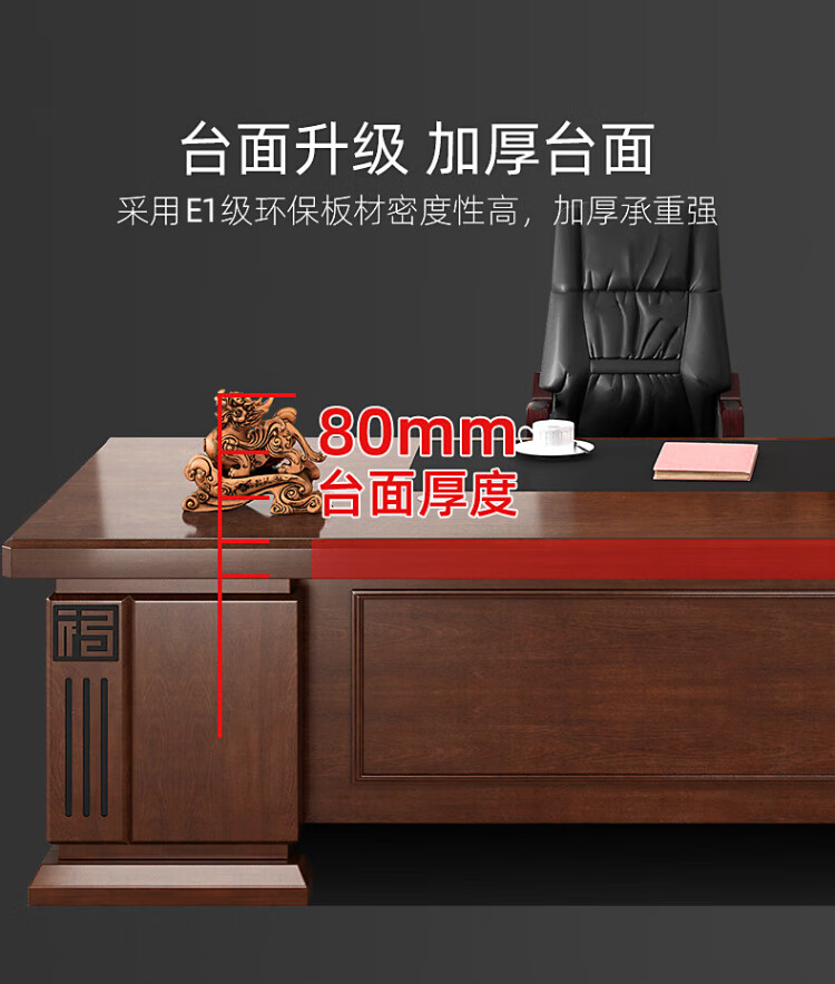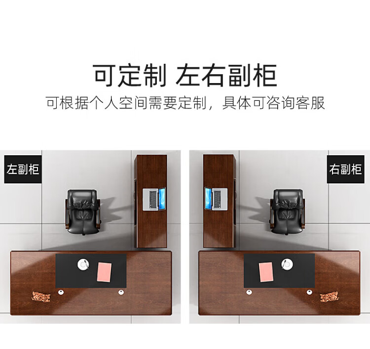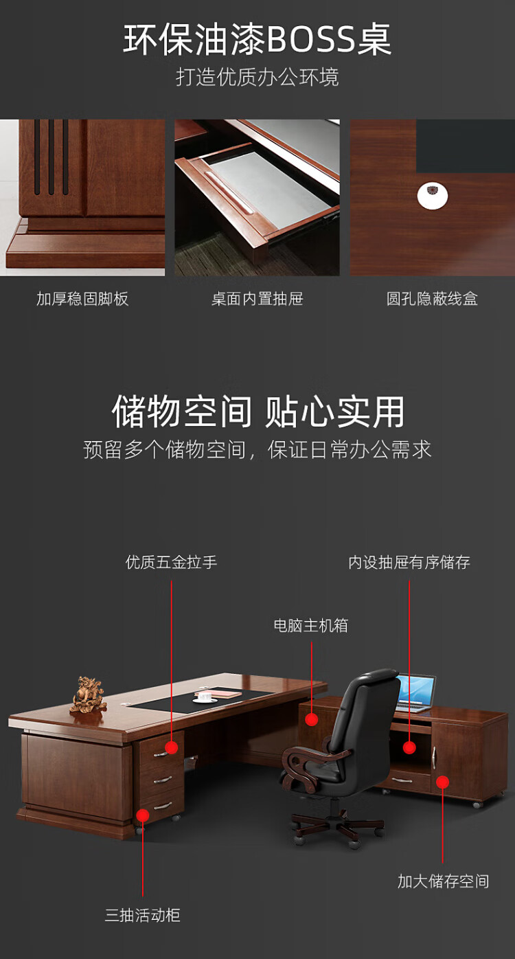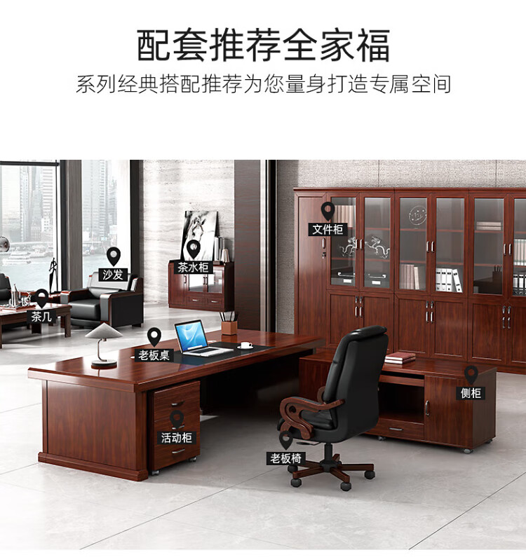 Lanran boss desk solid wood veneer desk president desk high-end paint executive desk 2000*1000mm including side cabinets