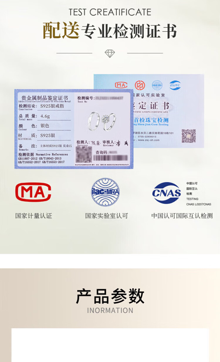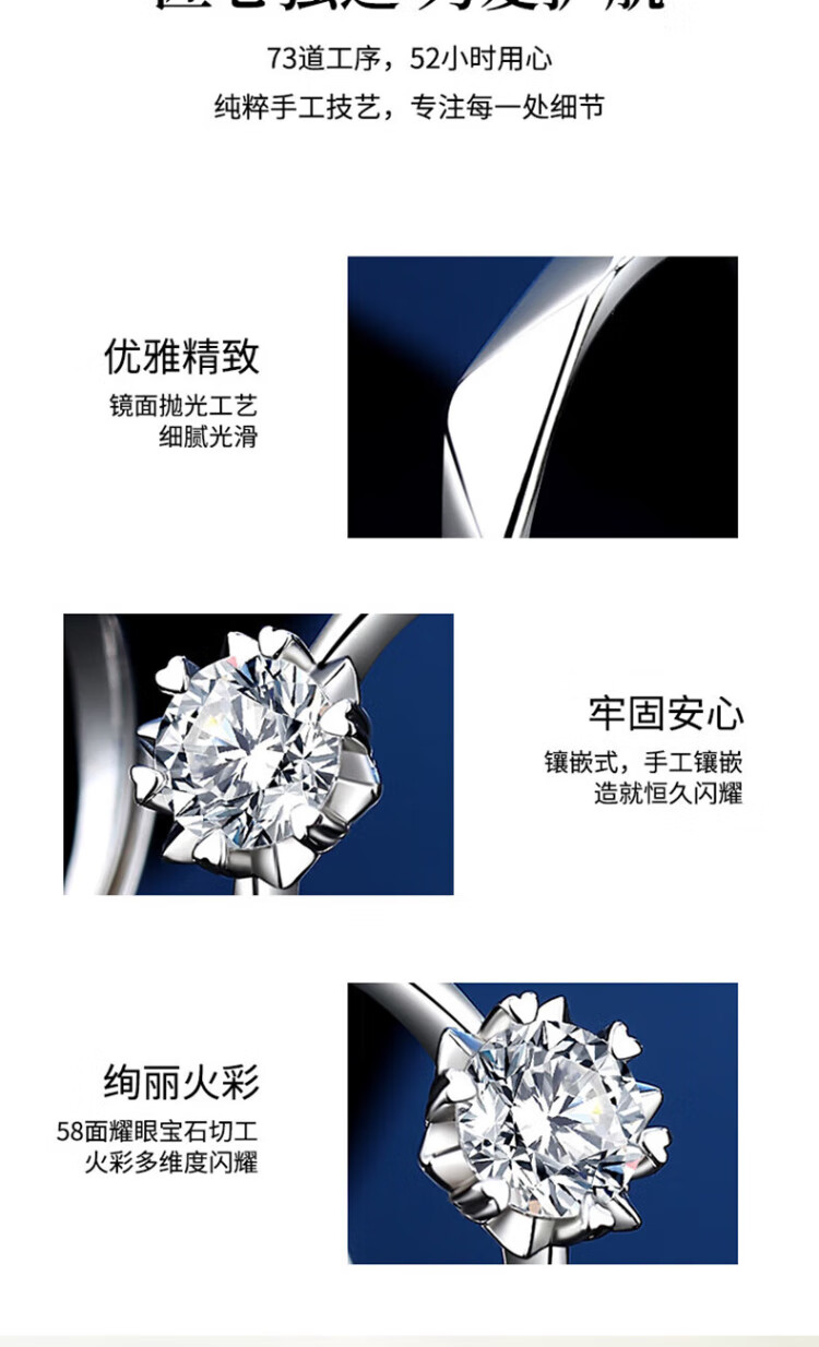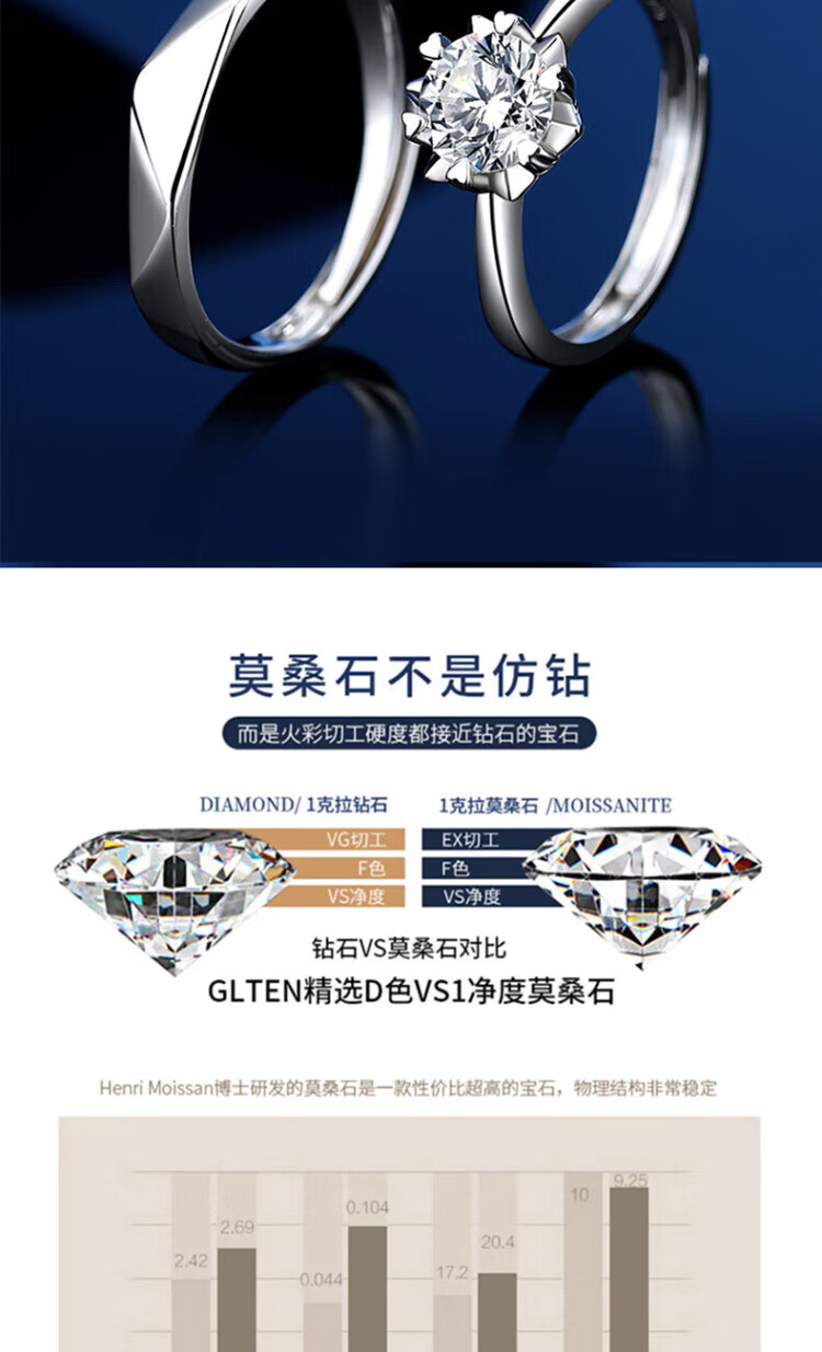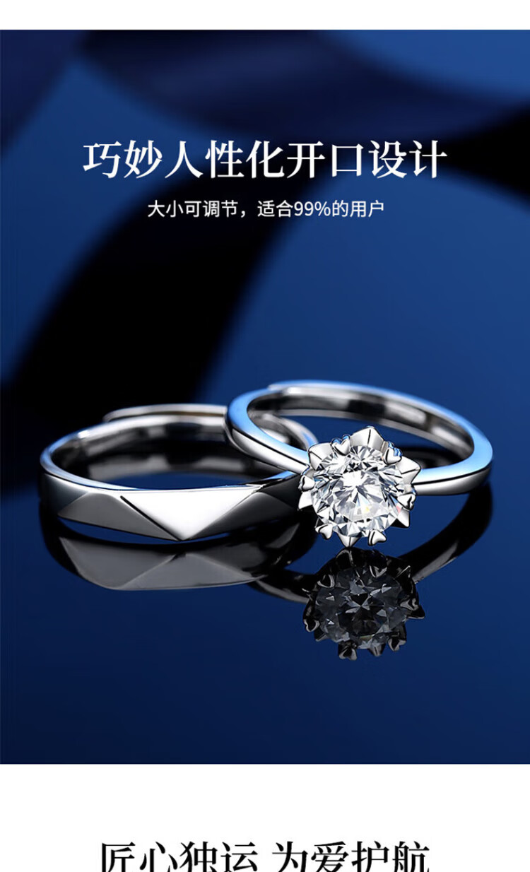 Chow Pak Fook sterling silver D-grade moissanite couple rings, a pair of wedding rings, tail rings, birthday gifts for girlfriend