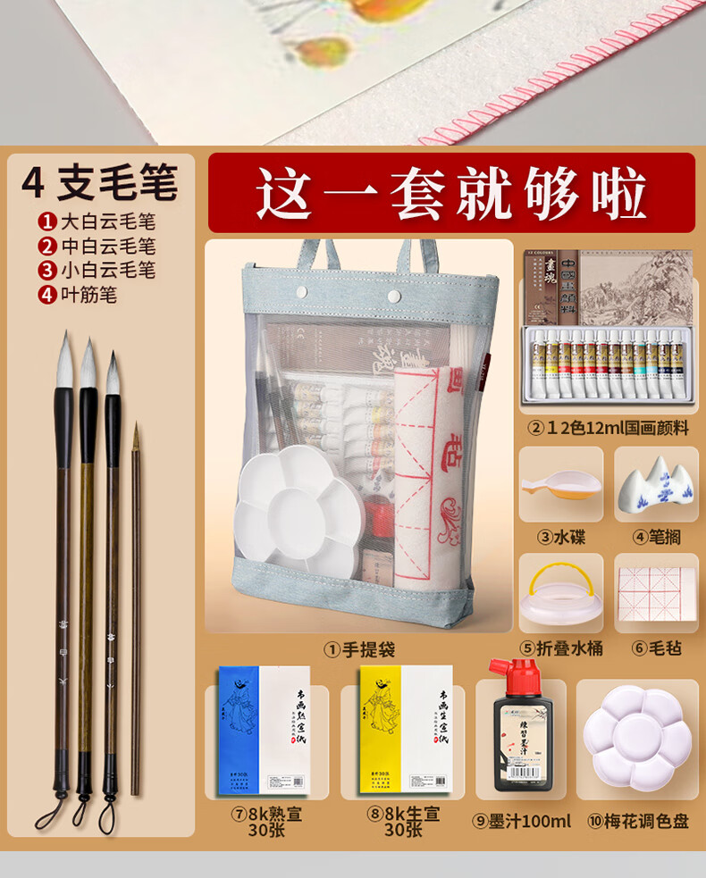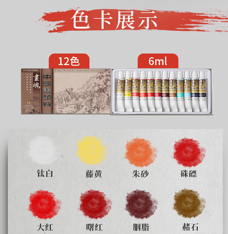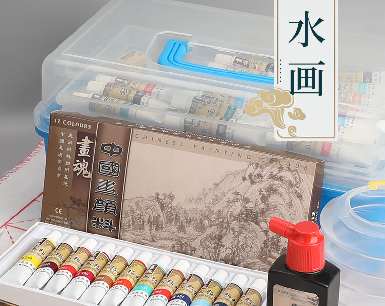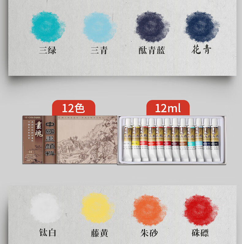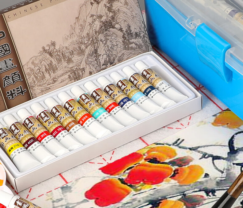Surada Chinese Painting Pigments Chinese Painting Pigments Chinese Painting Pigment Set Beginner Students Children's Ink Painting Landscape Painting 12 Colors 12ML Handbag Set SD150