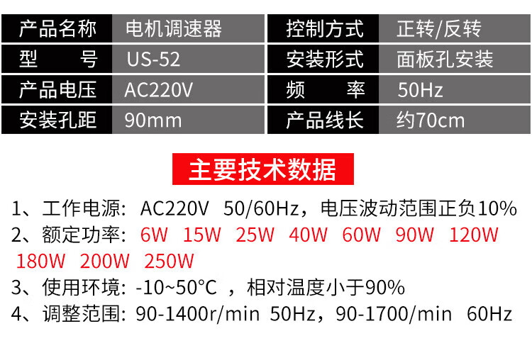 Kailan Intelligent Manufacturing US-52 reduction motor speed regulator motor switch 220V