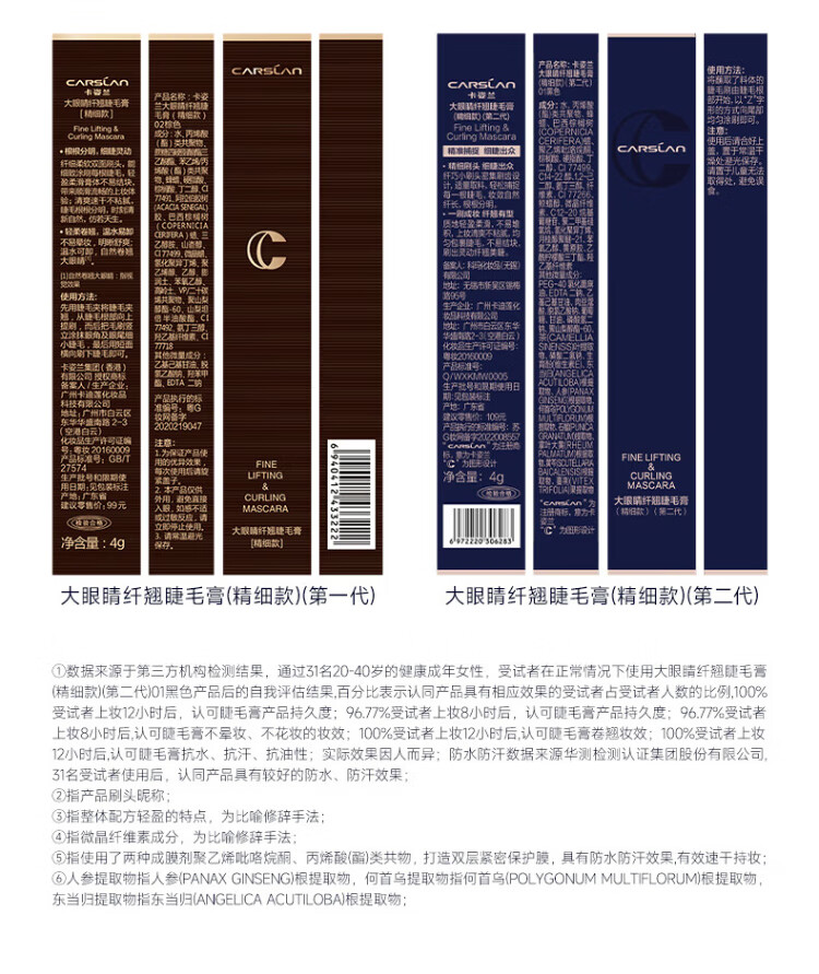 Carslan Big Eyes Slim Mascara Thick, Long, Waterproof and Smudge-Free (Fine Style) 4g Birthday Gift for Girls