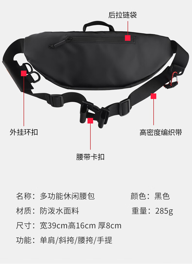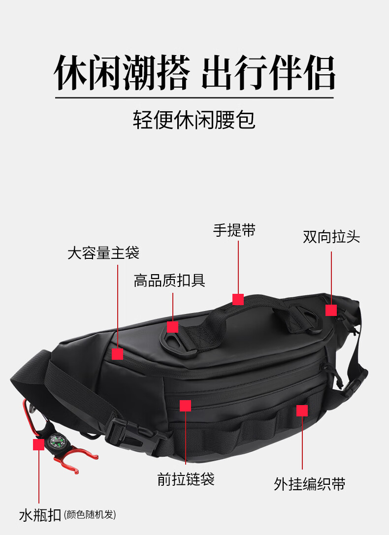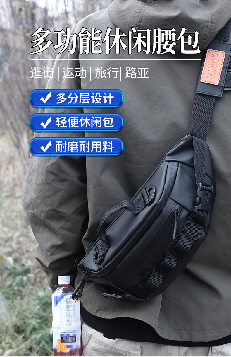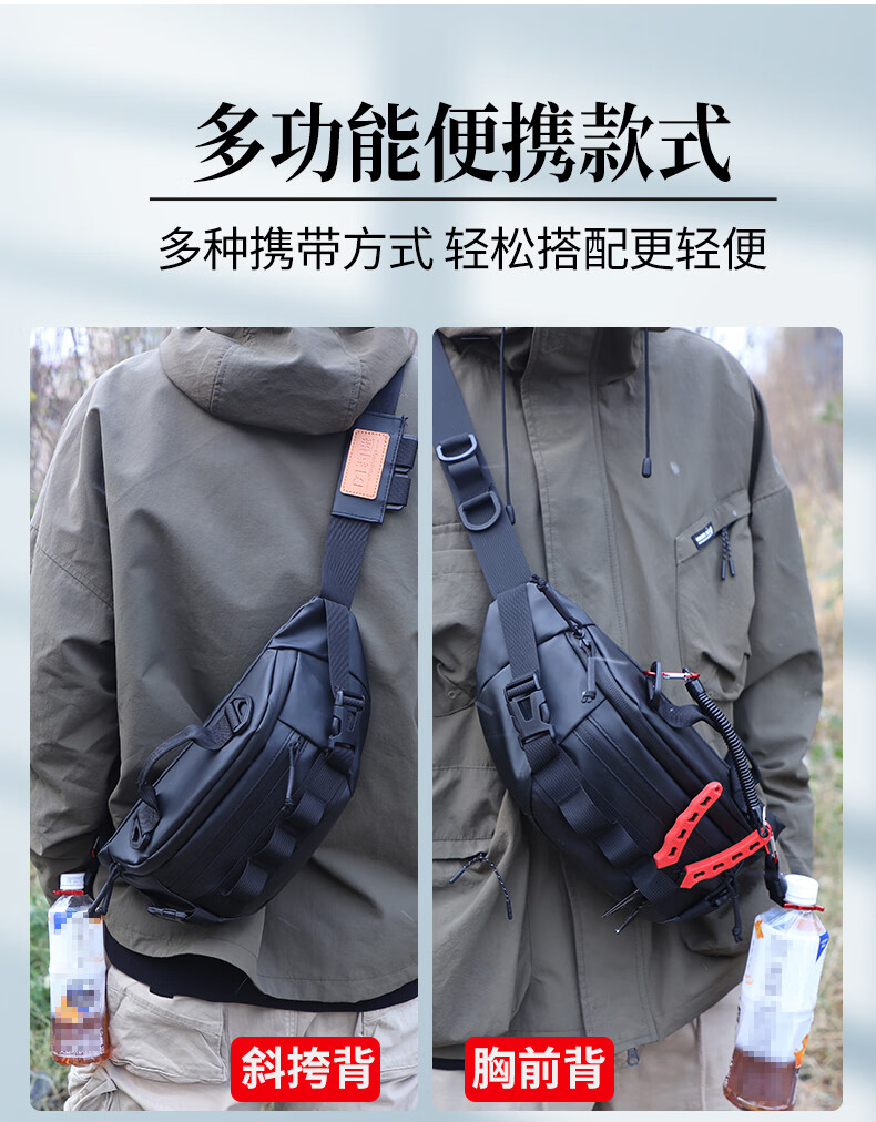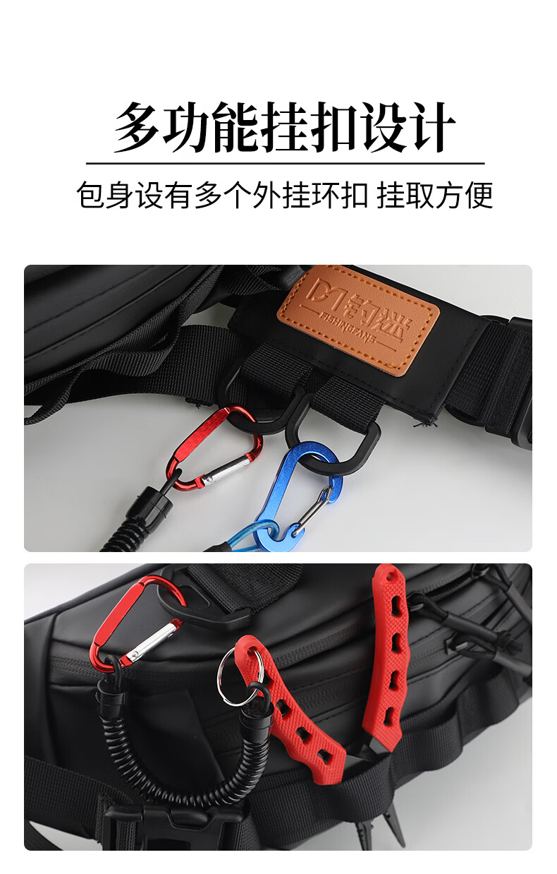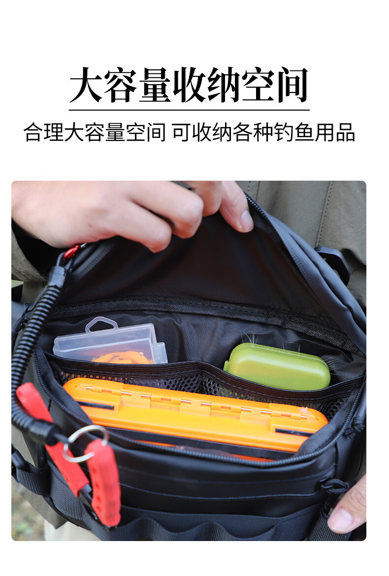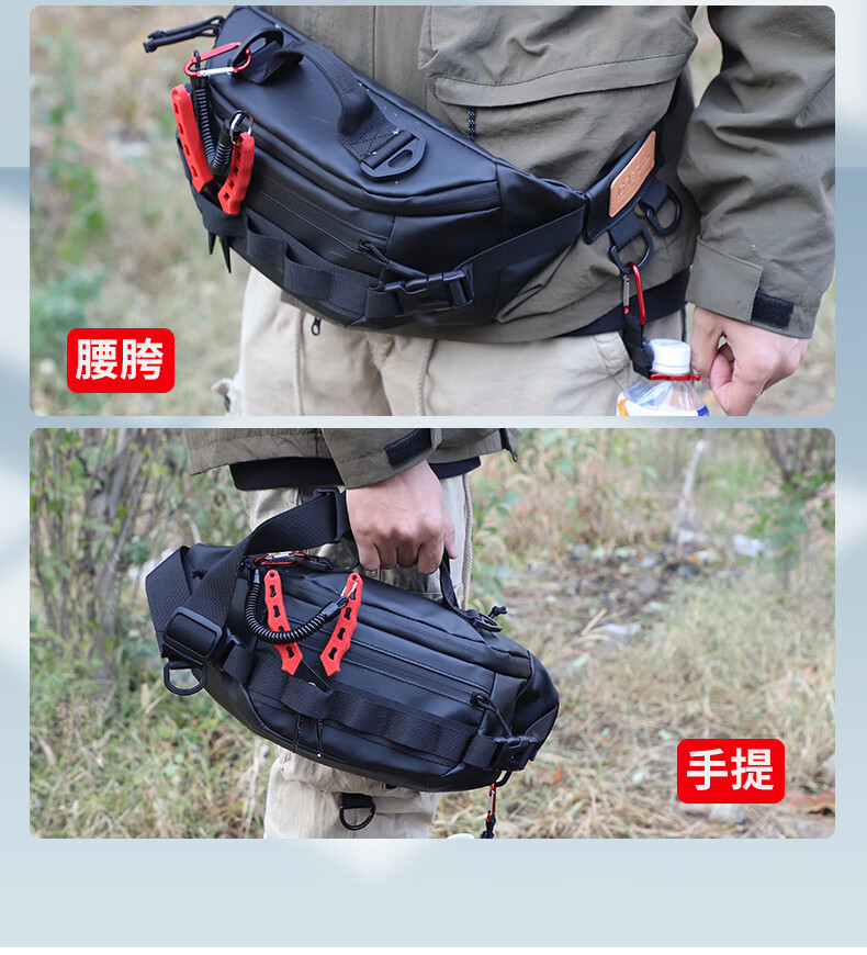 Fishing fan multifunctional Luya waist bag lightweight waterproof shoulder bag chest bag crossbody bag black travel leisure sports storage bag
