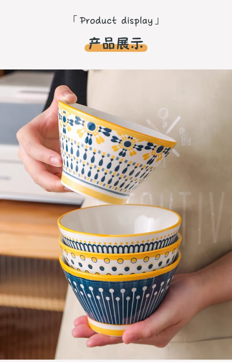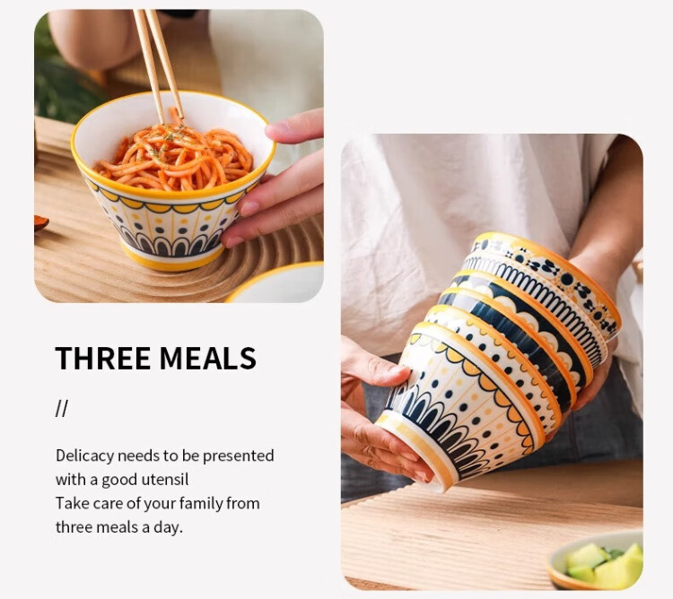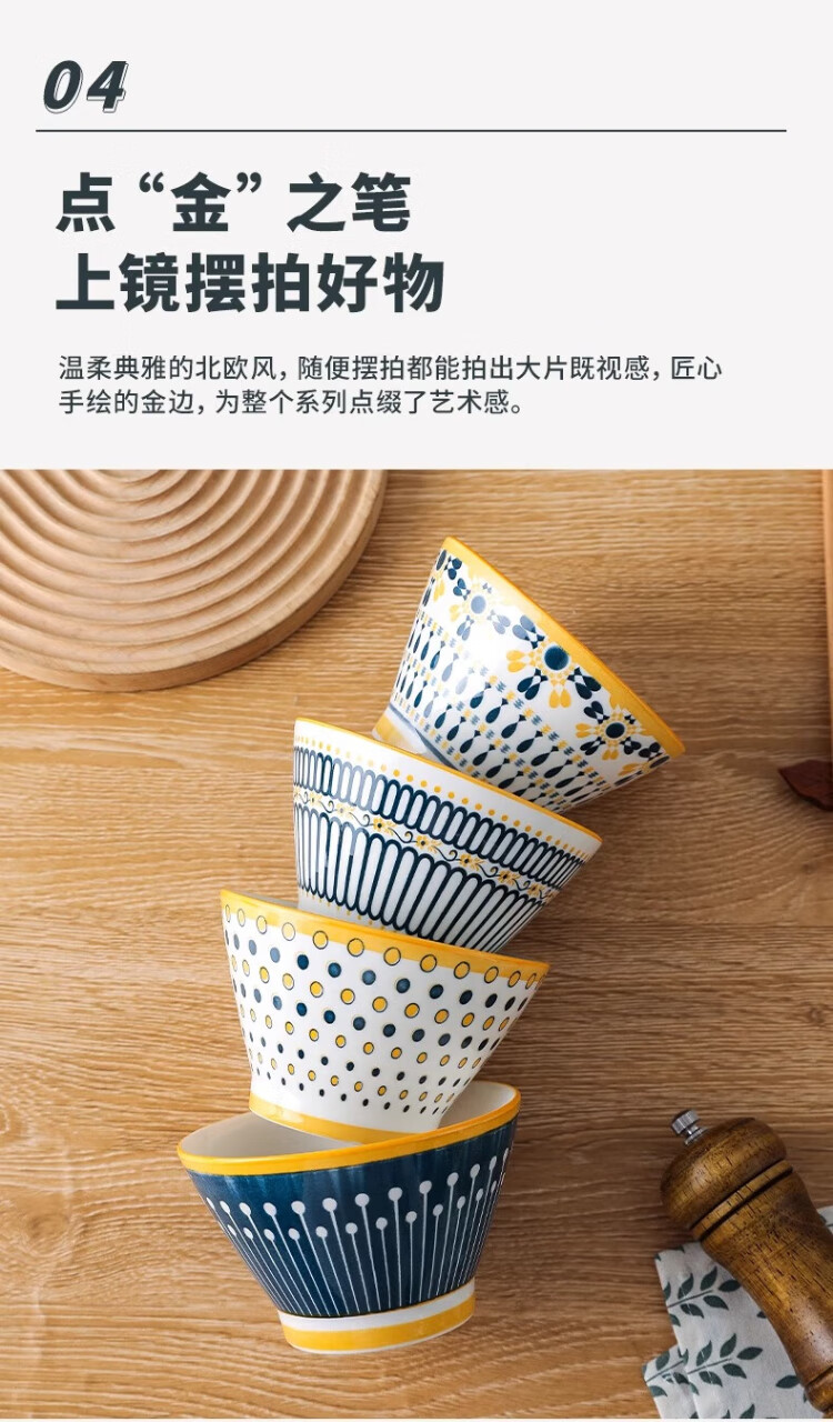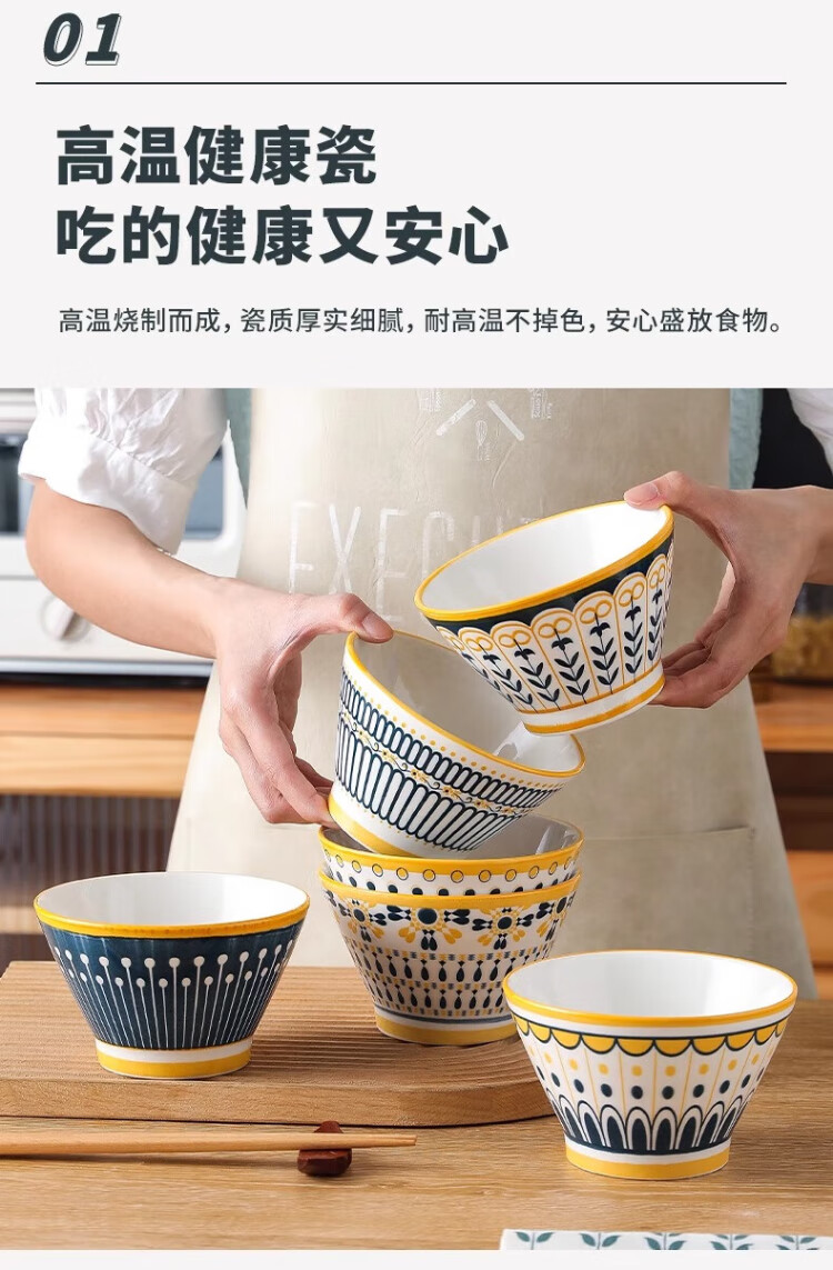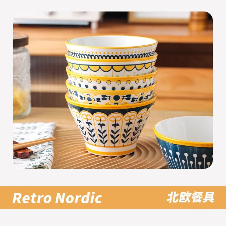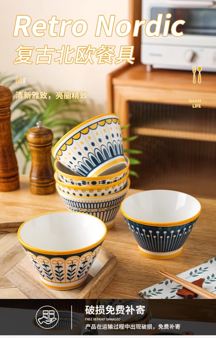 Persson household ceramic bucket rice bowl high-foot anti-scalding tableware eating bowl Nordic series 5-inch bowl 6-pack
