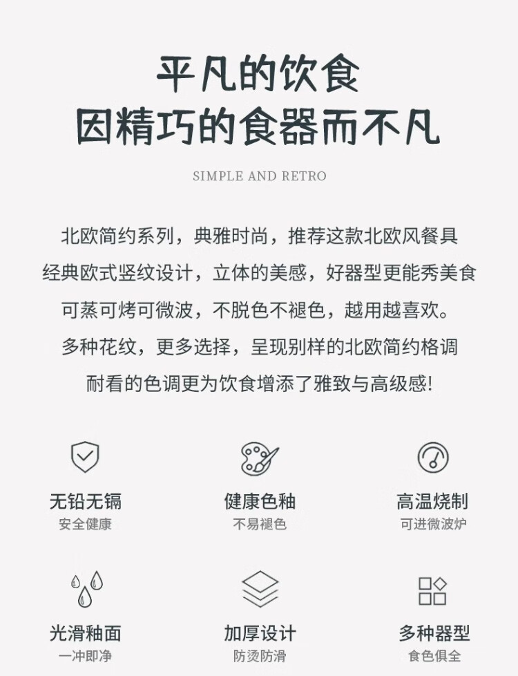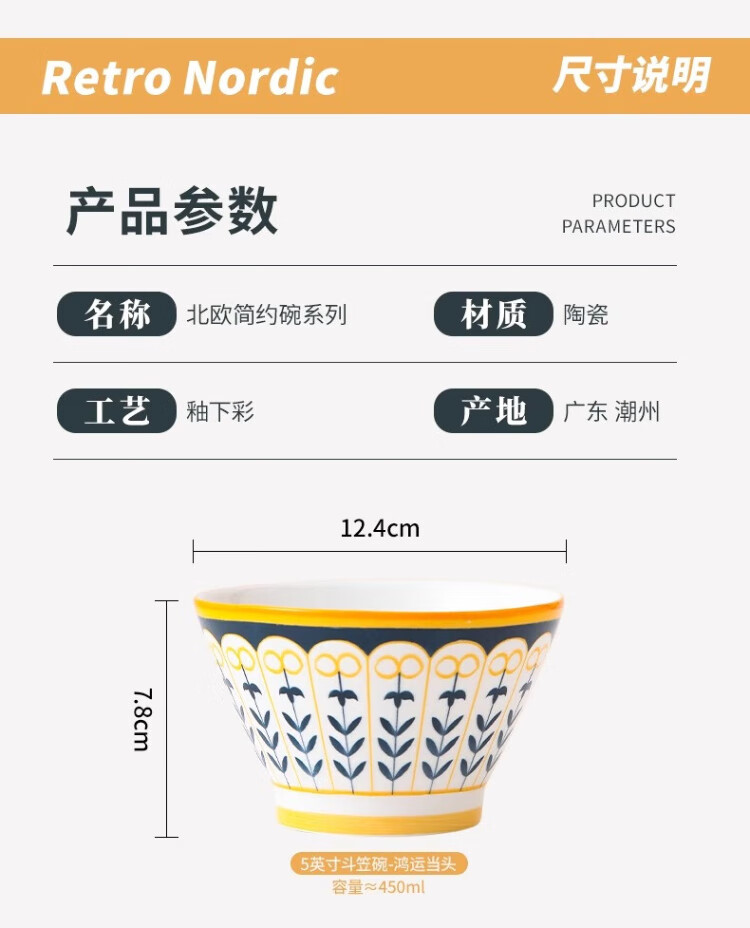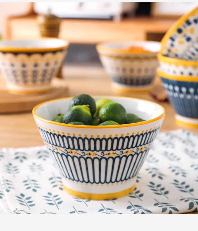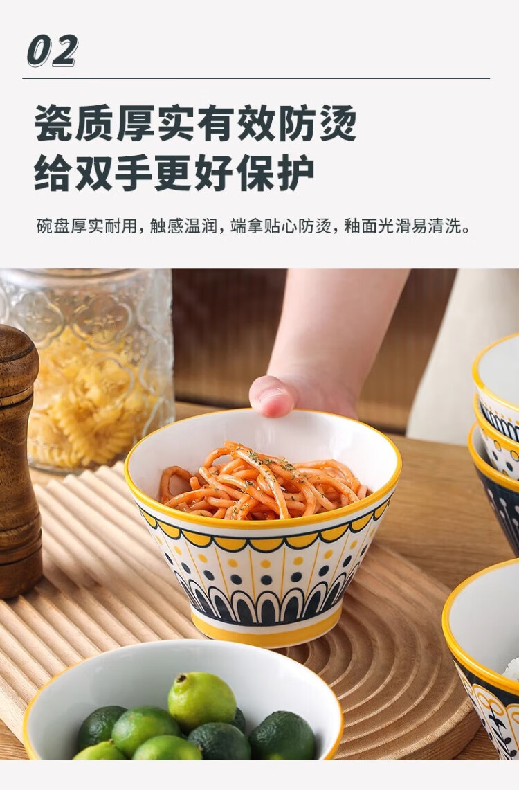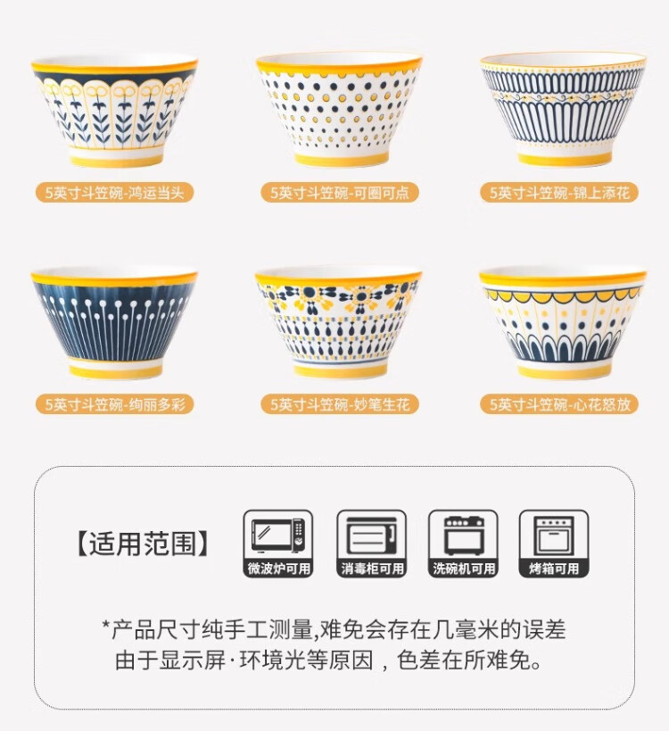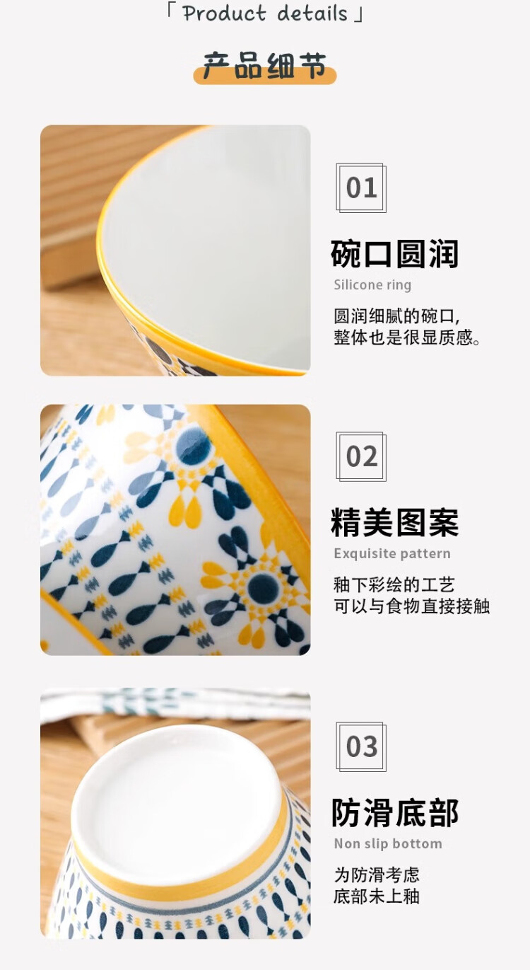 Persson household ceramic bucket rice bowl high-foot anti-scalding tableware eating bowl Nordic series 5-inch bowl 6-pack