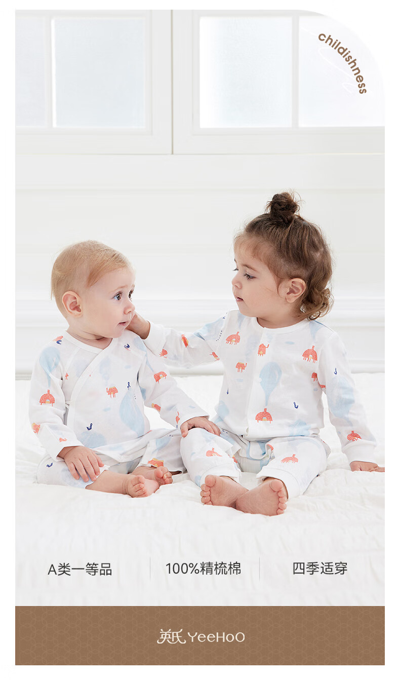 YEEHOO baby clothes, newborn onesies, men's and women's 100% combed cotton infant home crawling clothes, four seasons
