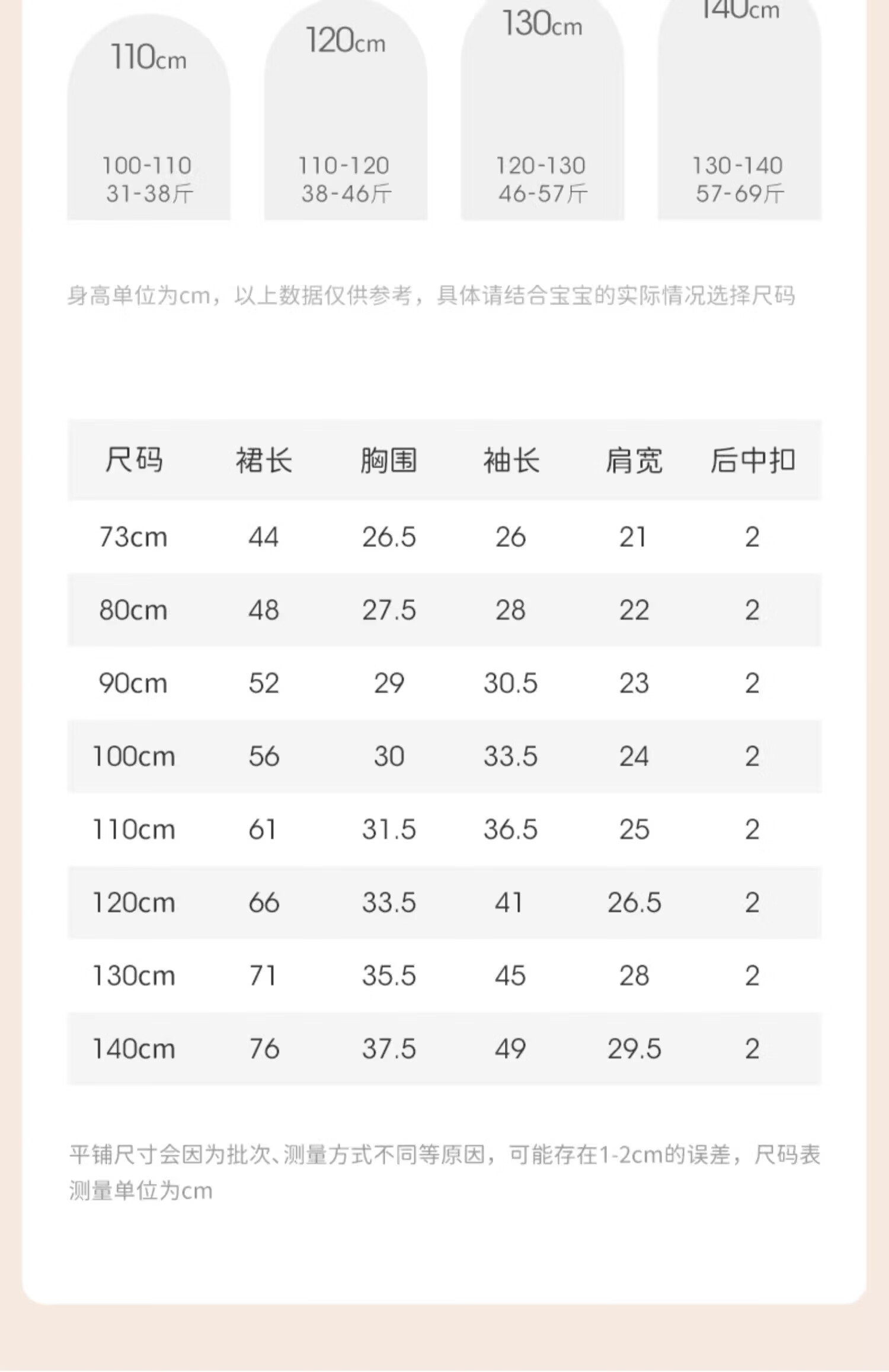 Size (cm) 42 44 46 48 50