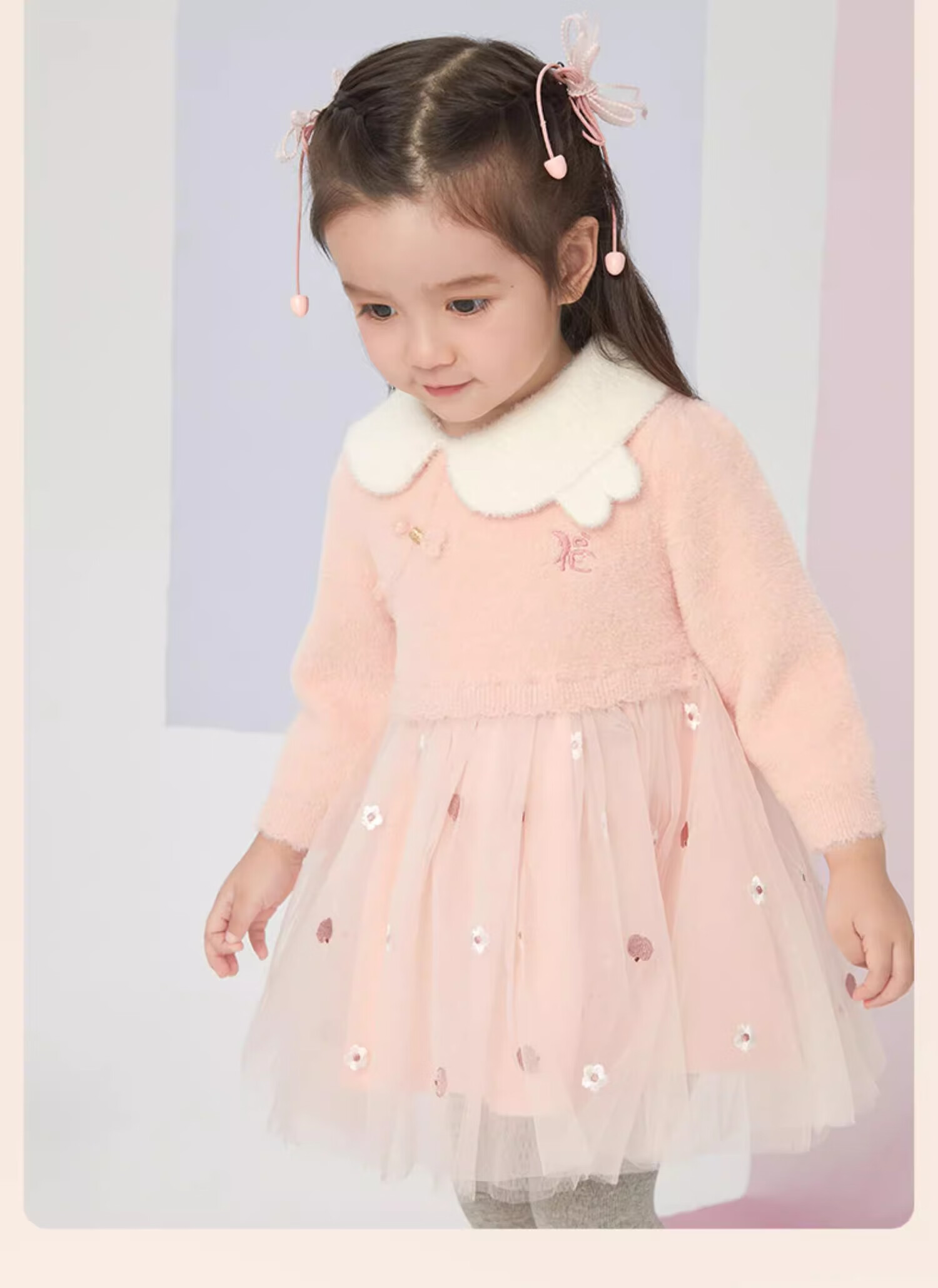 David Bella girls long-sleeved dress autumn and winter dress skirt children's national style princess dress New Year's wear