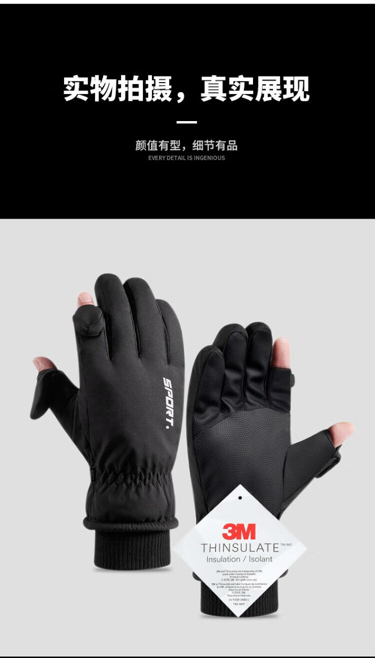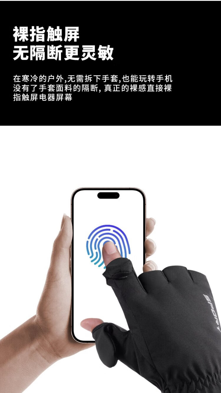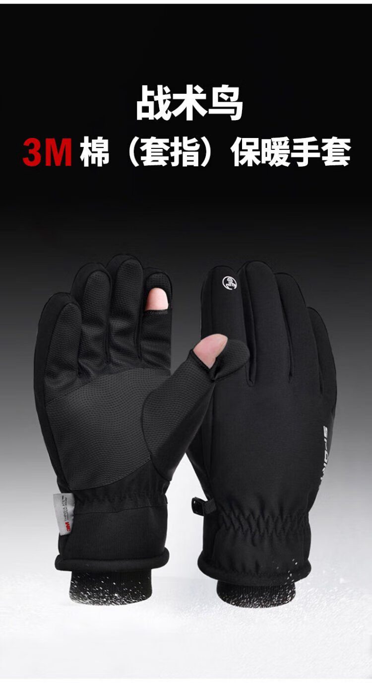 Tactical Bird (finger set) Thinsulate cotton winter warm gloves for men's cycling cold protection large size fishing with exposed fingers and touch screen