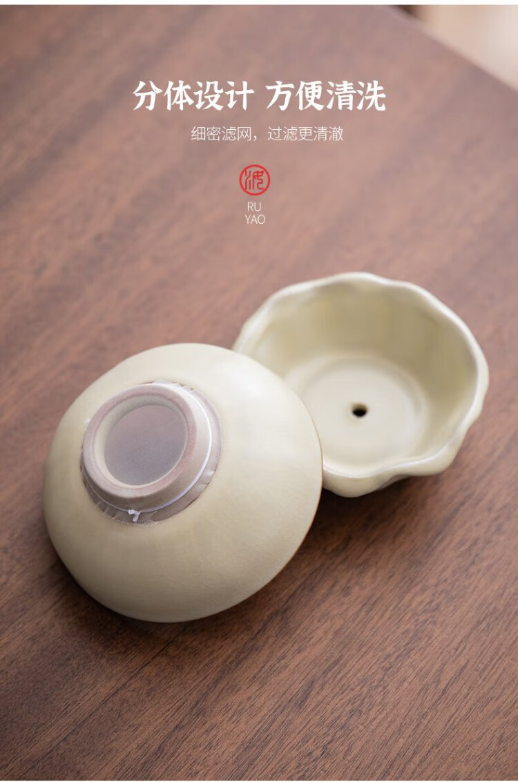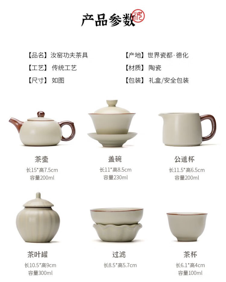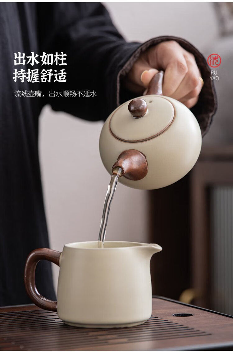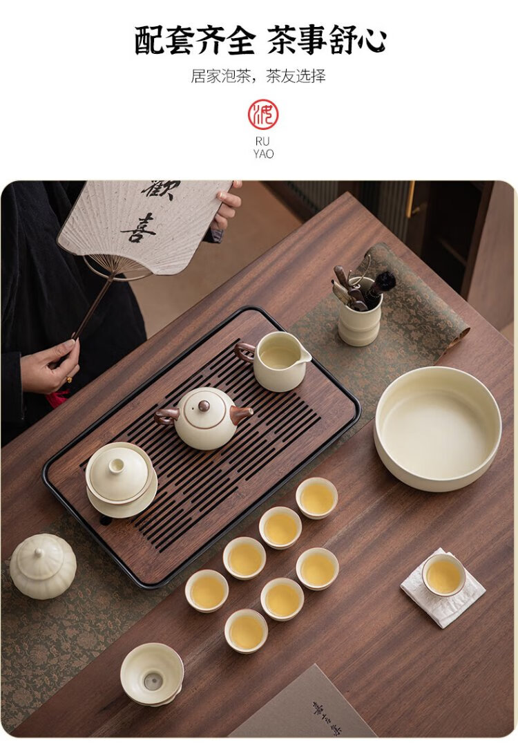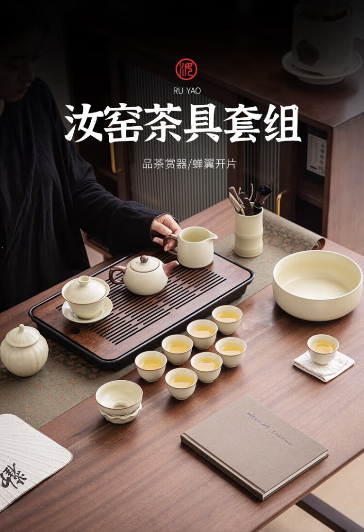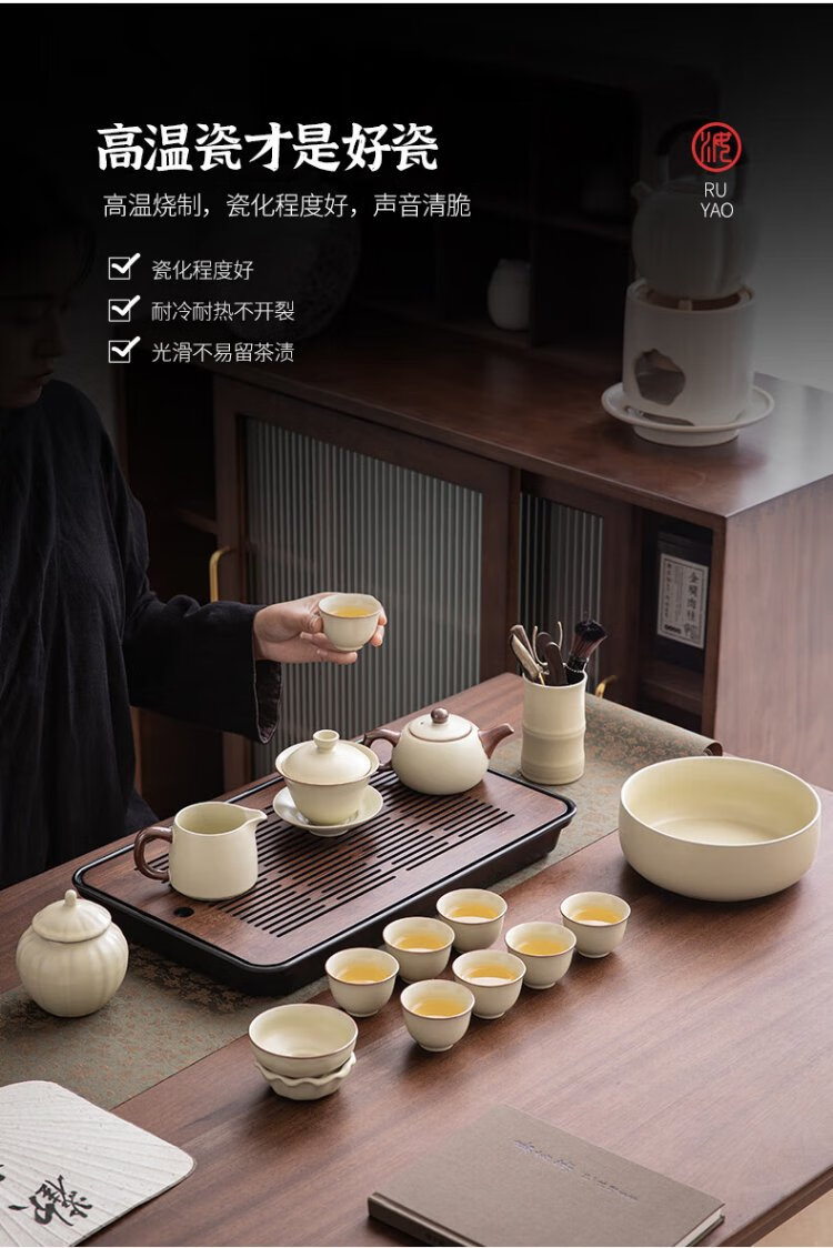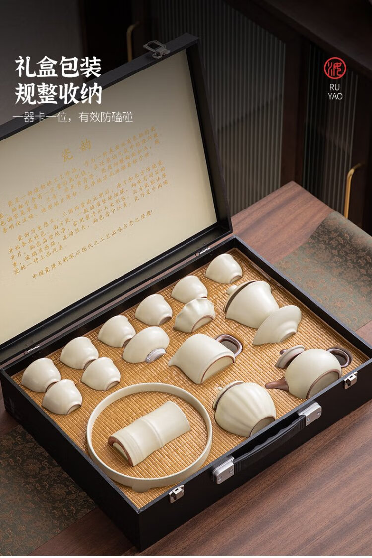 Lingyi tea set complete tea set set beige Ru kiln teapot tea cup gift box beige Ru kiln 16-head gift box set